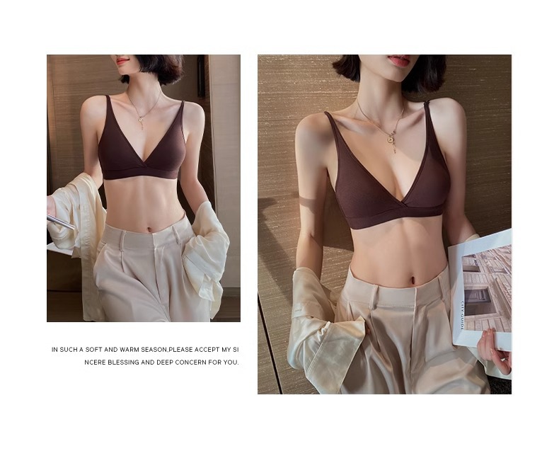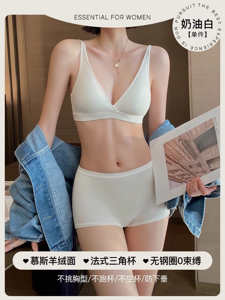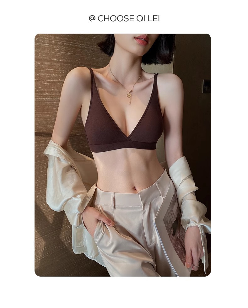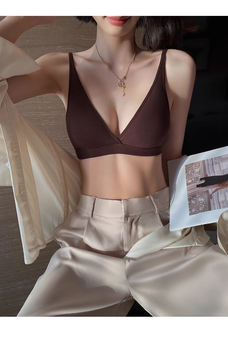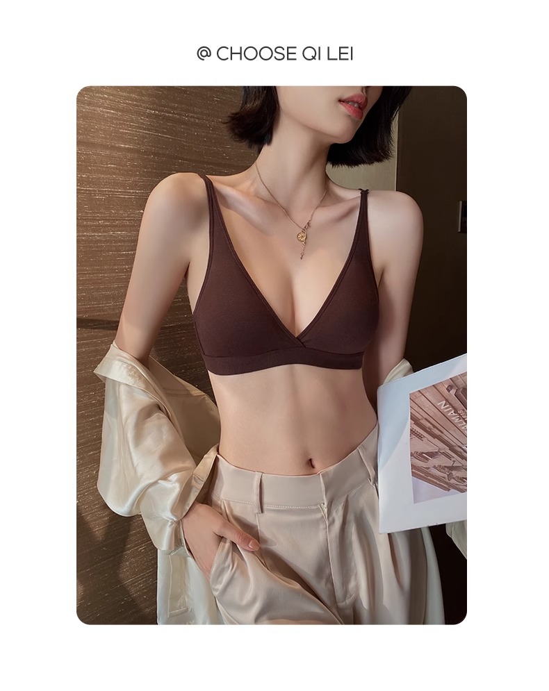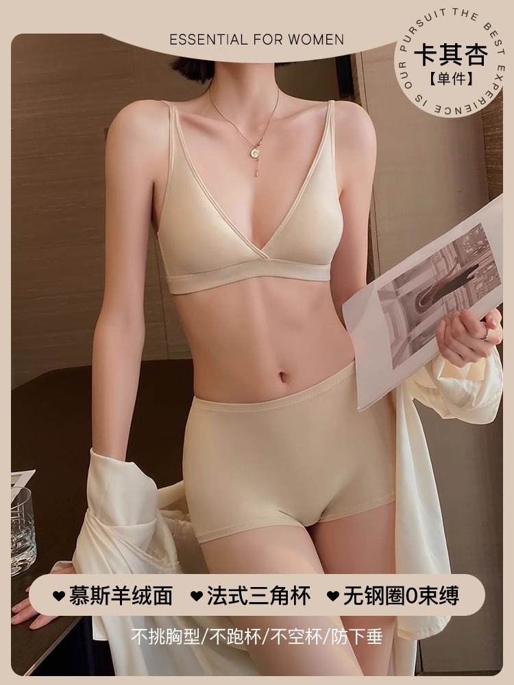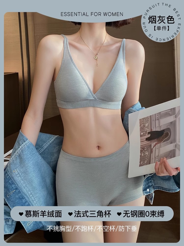 무스 벨벳 속옷 여성의 얇은 편안한 피부 친화적 인 원활한 프랑스 섹시한 깊은 V 작은 가슴 삼각형 컵 브래지어 가을과 겨울스토어 가기