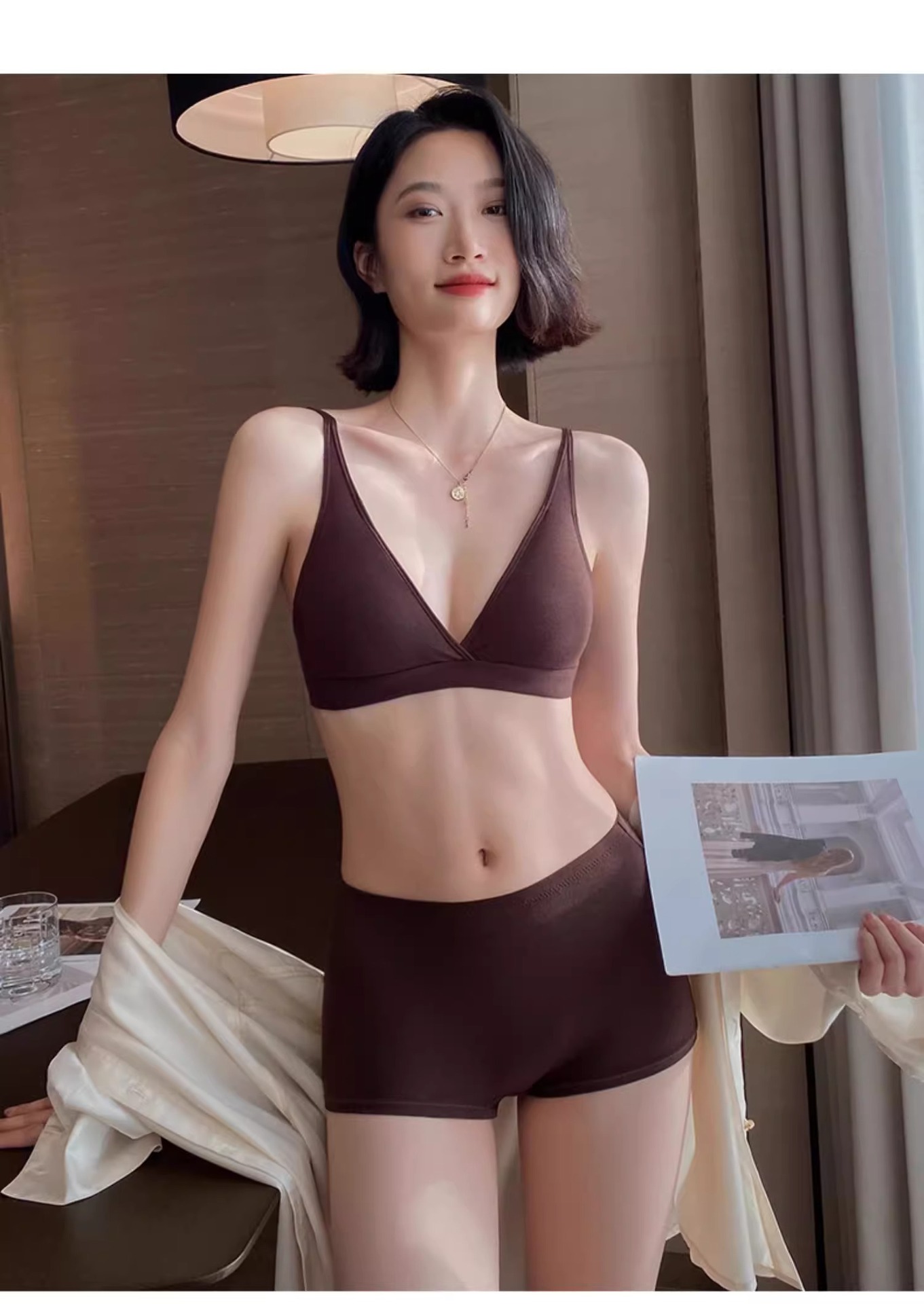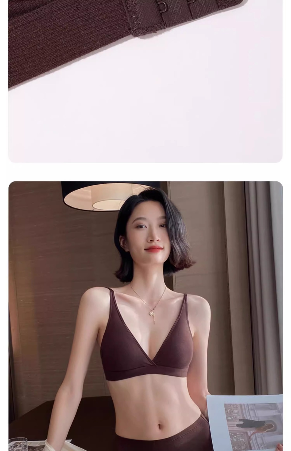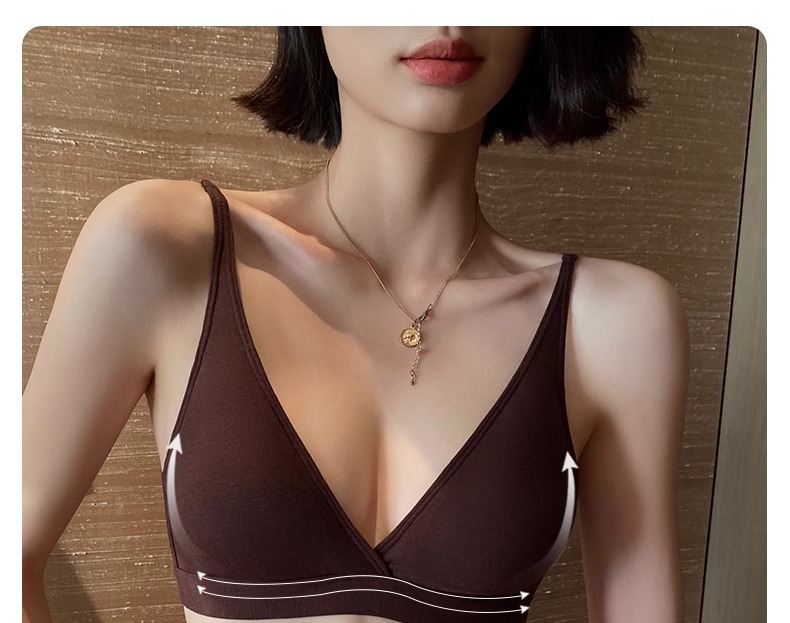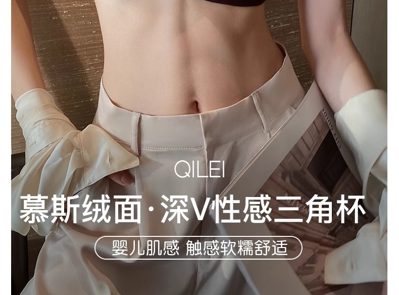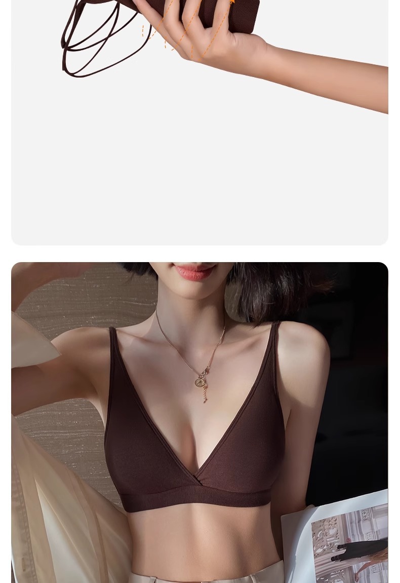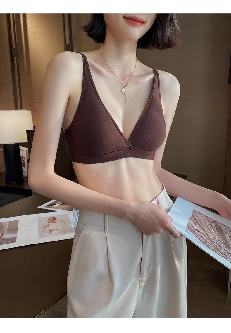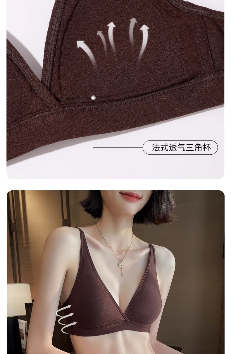 무스 벨벳 속옷 여성의 얇은 편안한 피부 친화적 인 원활한 프랑스 섹시한 깊은 V 작은 가슴 삼각형 컵 브래지어 가을과 겨울스토어 가기