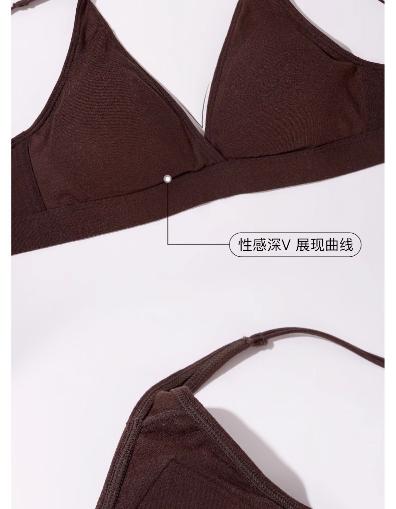무스 벨벳 속옷 여성의 얇은 편안한 피부 친화적 인 원활한 프랑스 섹시한 깊은 V 작은 가슴 삼각형 컵 브래지어 가을과 겨울