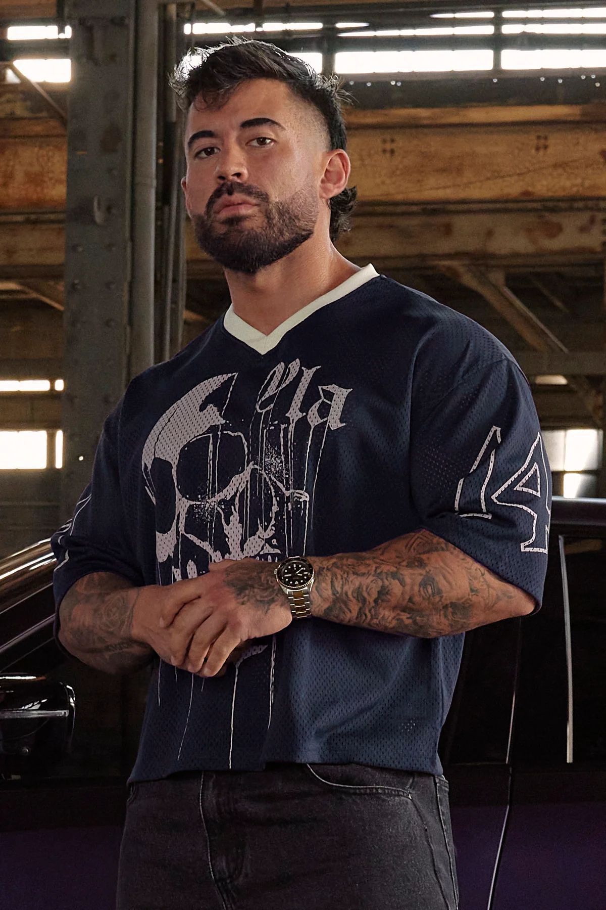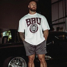 YOUNGLA 아메리칸 스타일 트렌디 브랜드 대형 티셔츠 남성 스포츠 피트니스 빠른 건조 통기성 대형 메쉬 인쇄 반팔 탑스토어 가기
