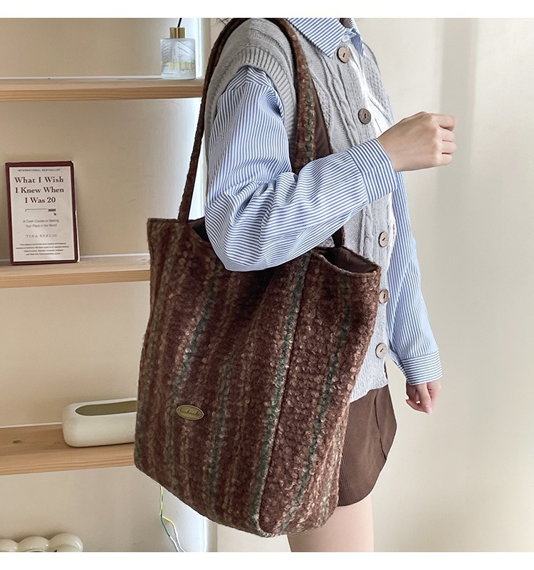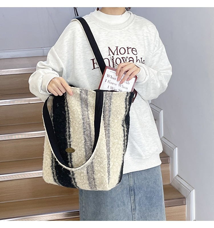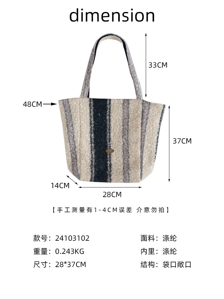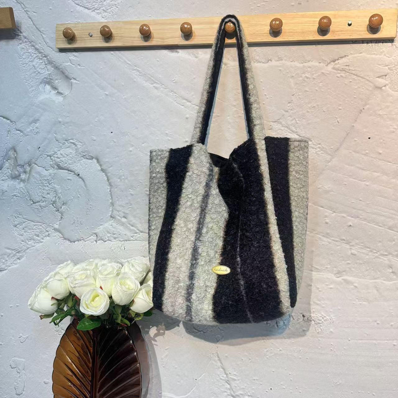 2025년 신상 인스 스타일 가을 겨울 양면 사용 가능한 모직 토트백, 레이지 숄더백, 대용량 쇼핑백, 트렌디스토어 가기