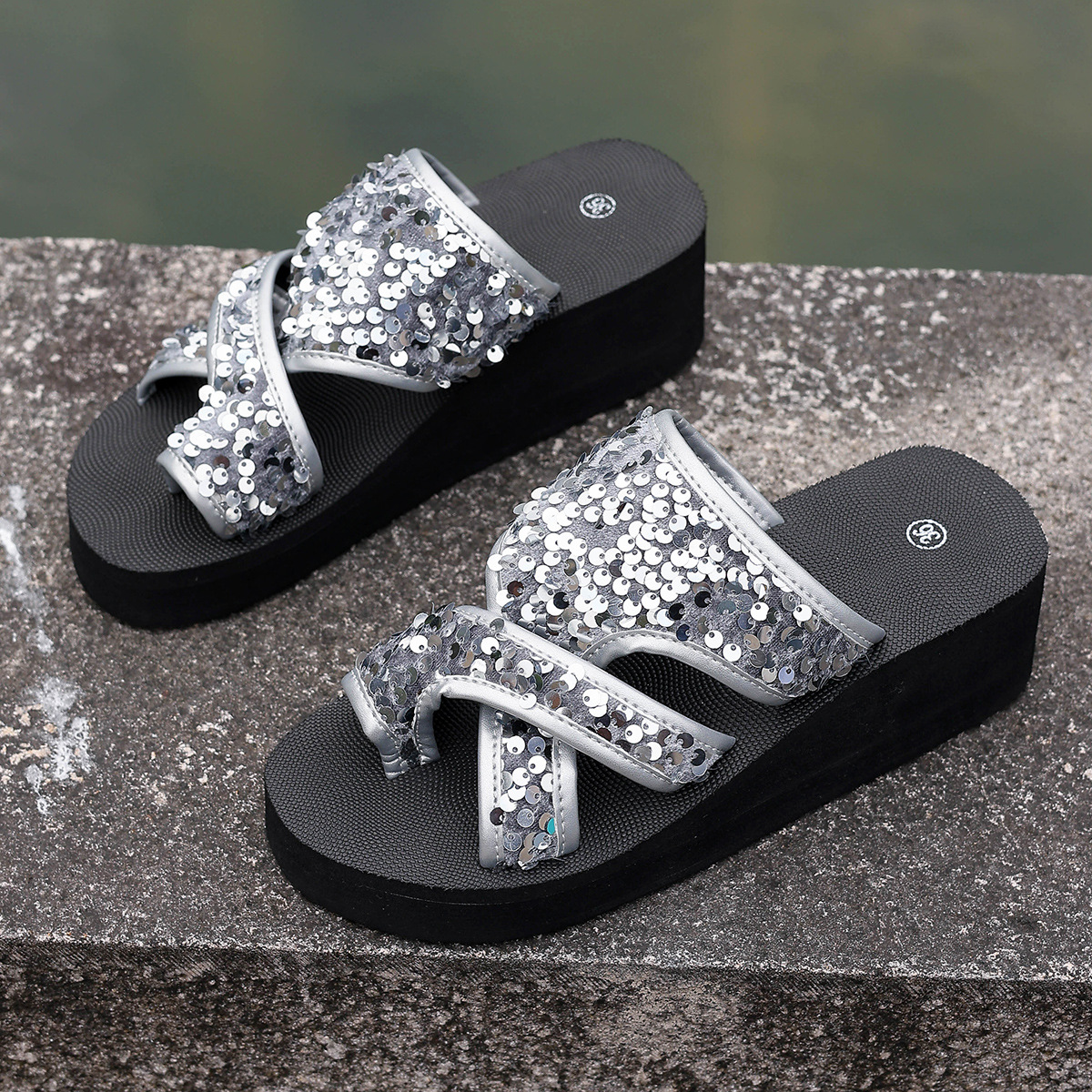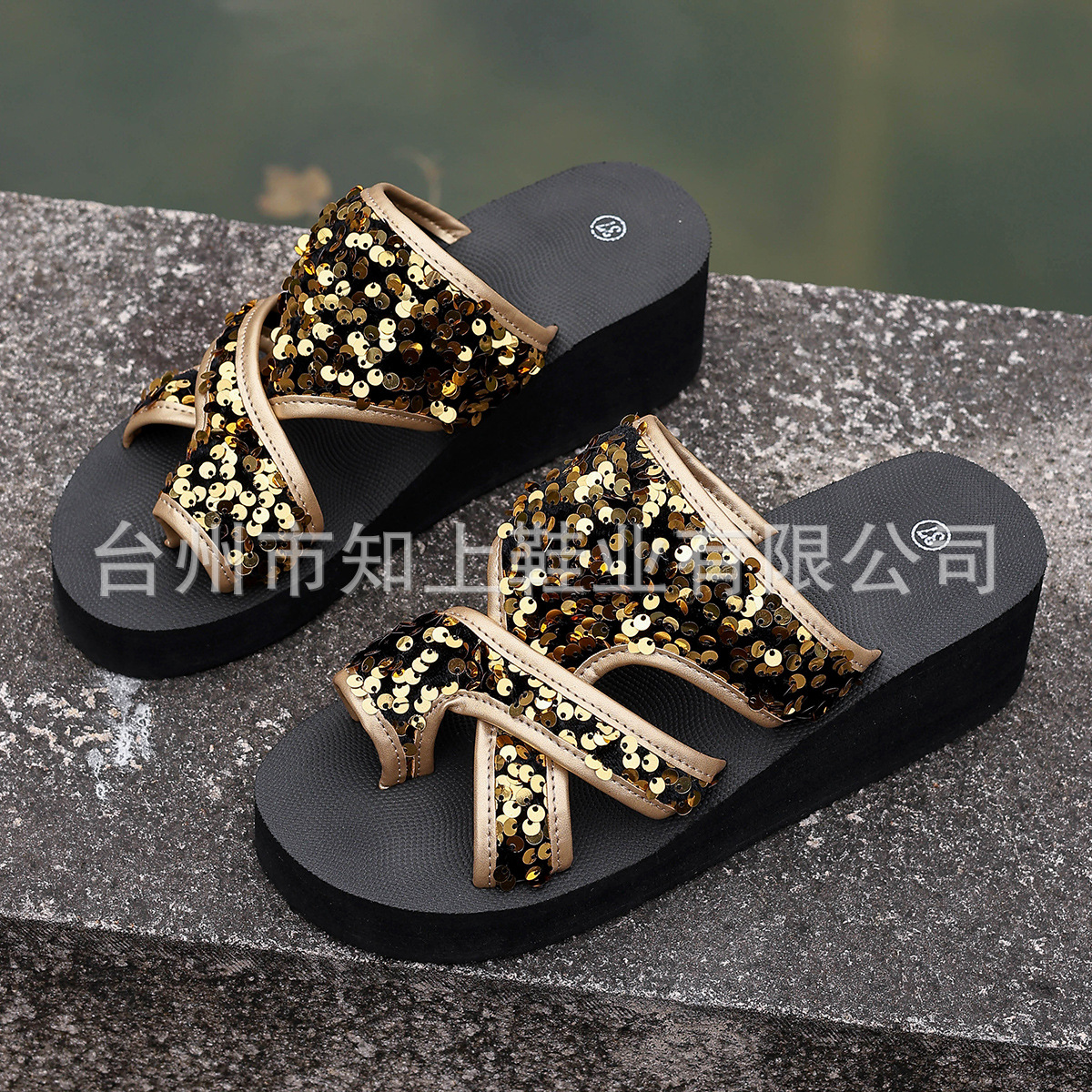 2025 여름 새로운 유럽과 미국의 플러스 사이즈 패션 웨지 힐 슬리퍼 여성용 미끄럼 방지 소프트 하단 비치 슬리퍼