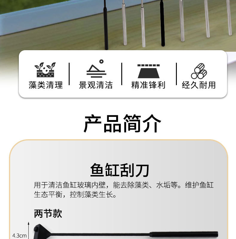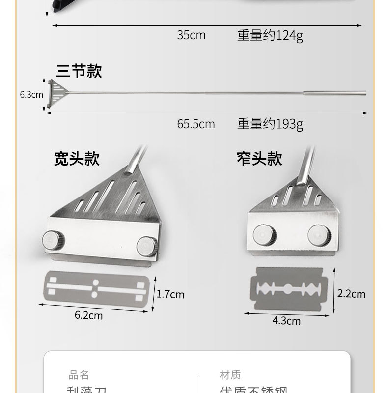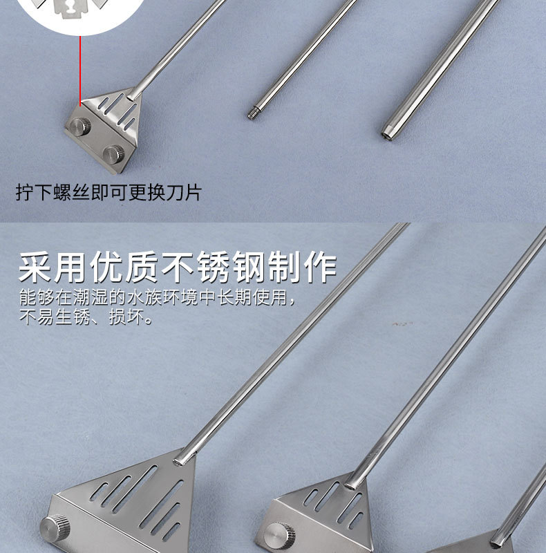 물고기 탱크 스테인레스 스틸 조류 스크래핑 칼 수족관 청소 도구 섹션 2 섹션 3 조류 제거 나이프 물고기 탱크 청소 안전 블레이드