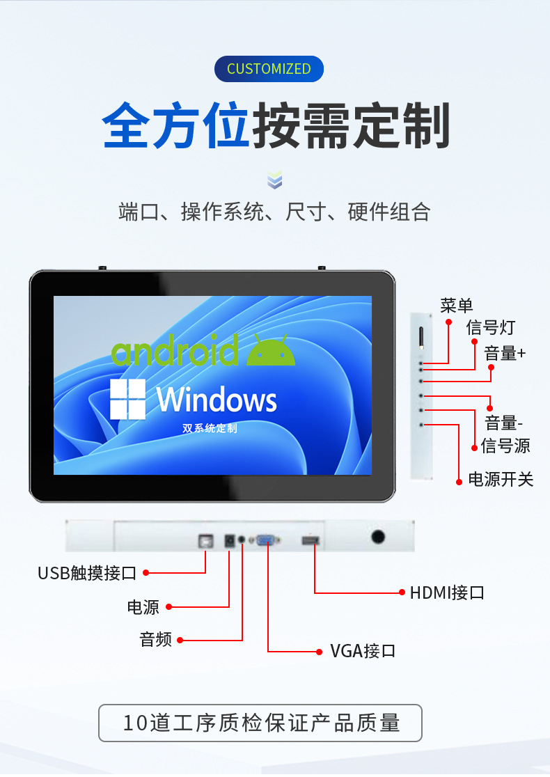 초박형 임베디드 산업용 제어 산업용 올인원 안드로이드 터치 태블릿 모니터 팬리스 호스트 휴대용