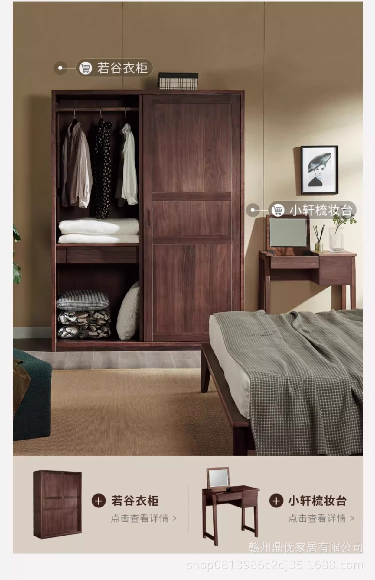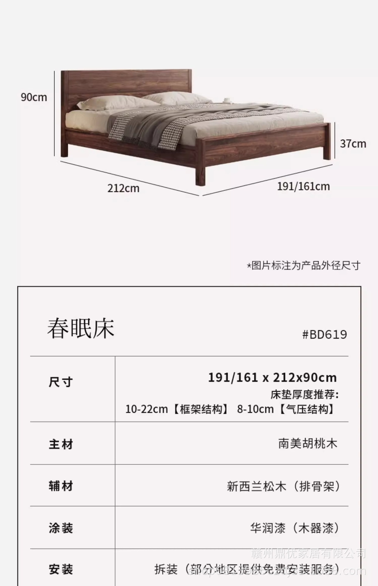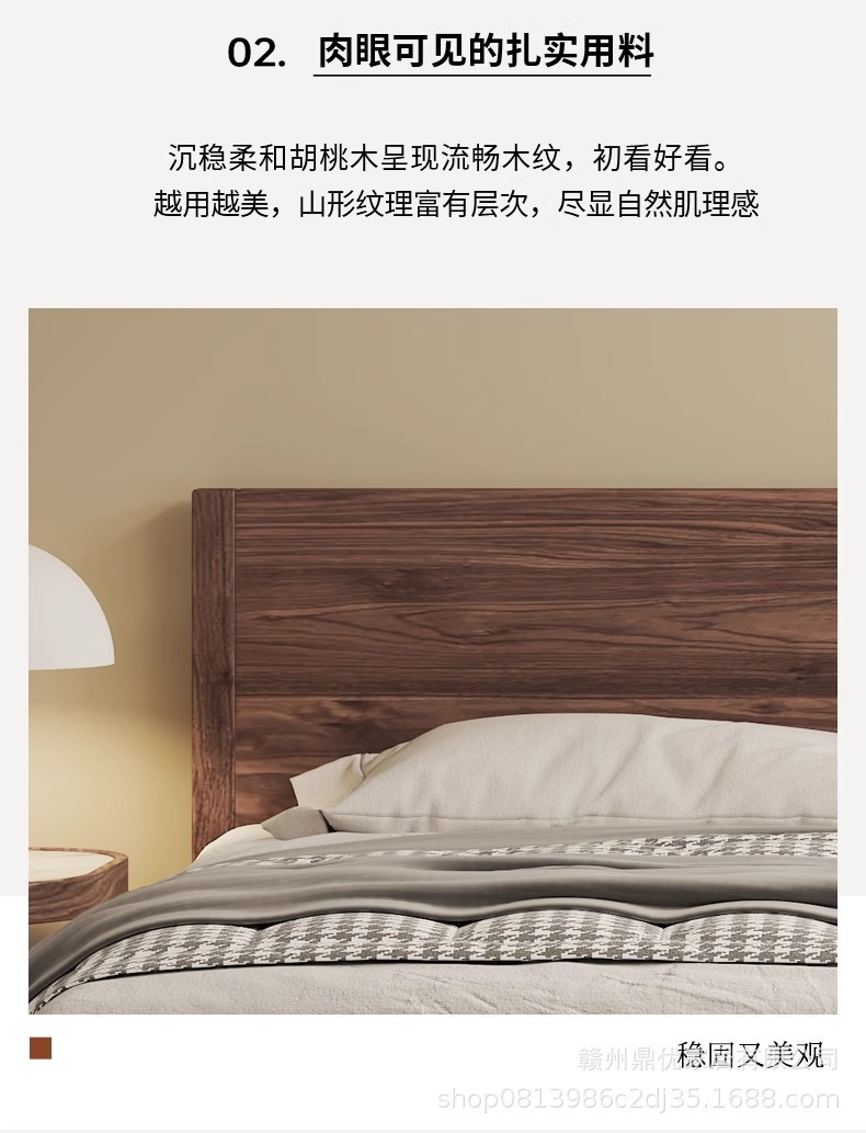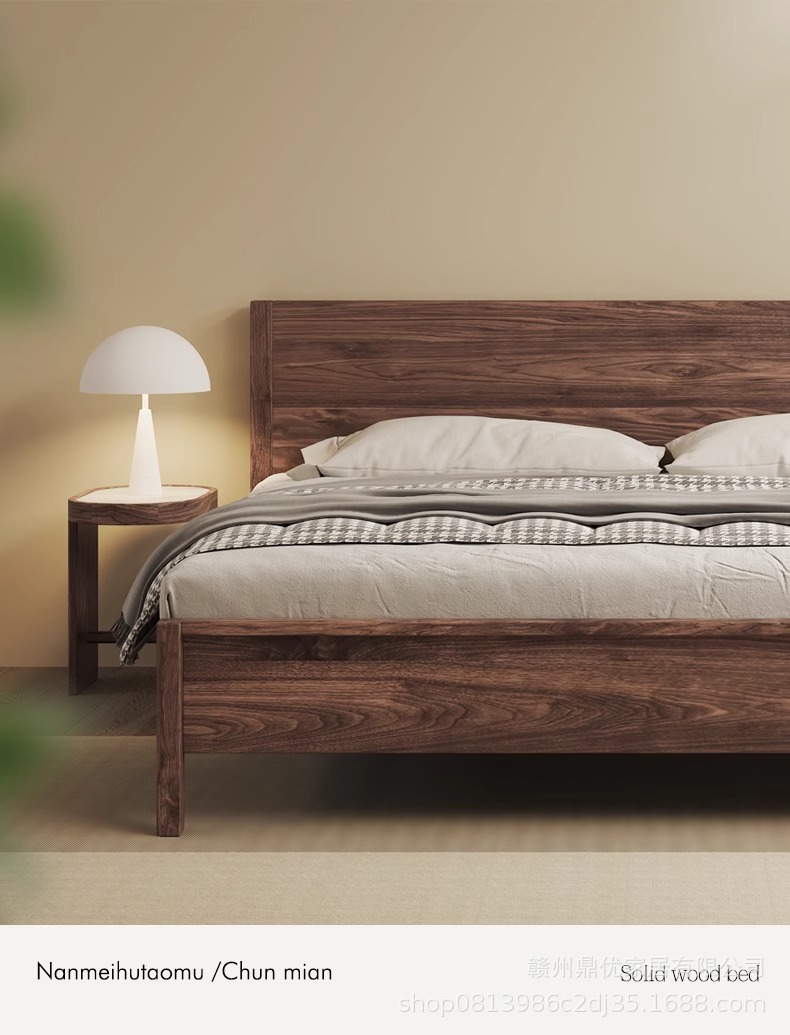 현대 간단한 남미 월넛 1.8 m 단단한 나무 침대 더블 마스터 침실 침대 1.5 m 로그 스타일 홈 침실 침대스토어 가기