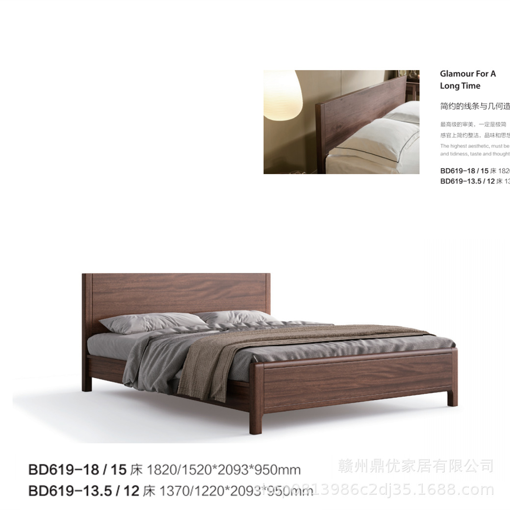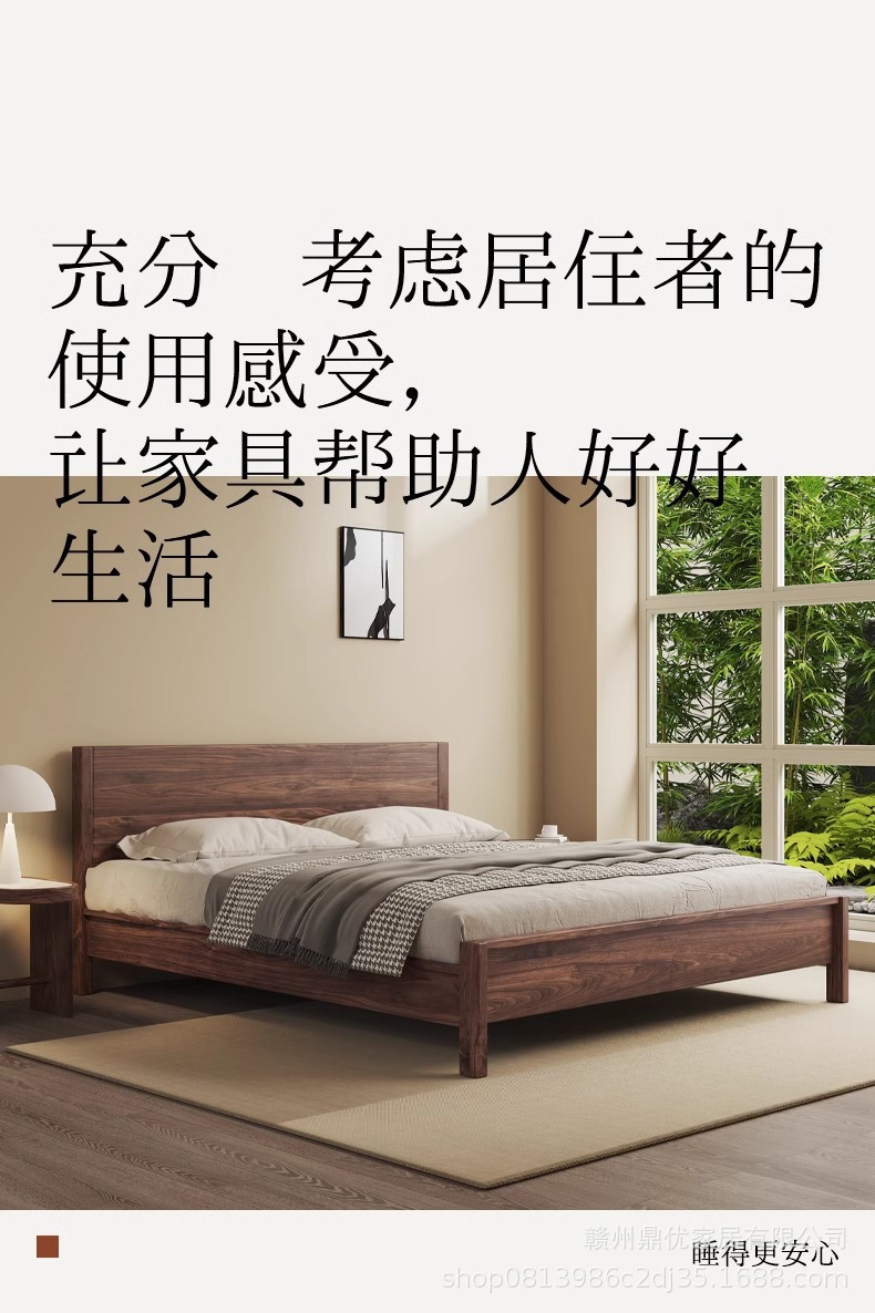 현대 간단한 남미 월넛 1.8 m 단단한 나무 침대 더블 마스터 침실 침대 1.5 m 로그 스타일 홈 침실 침대