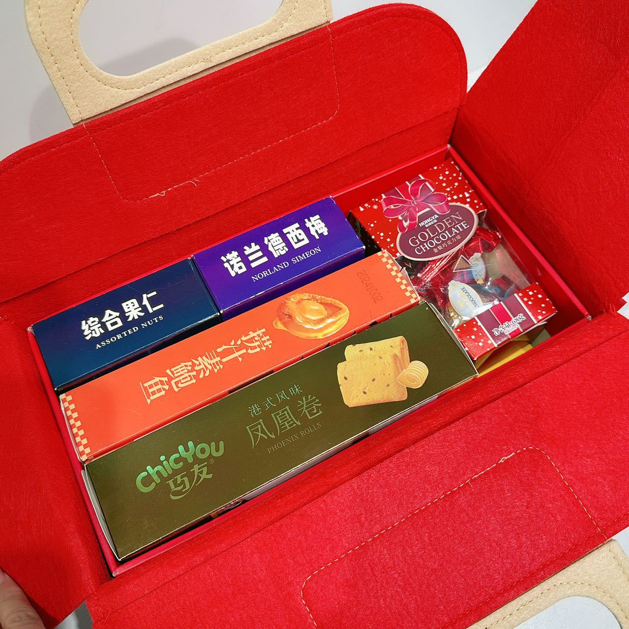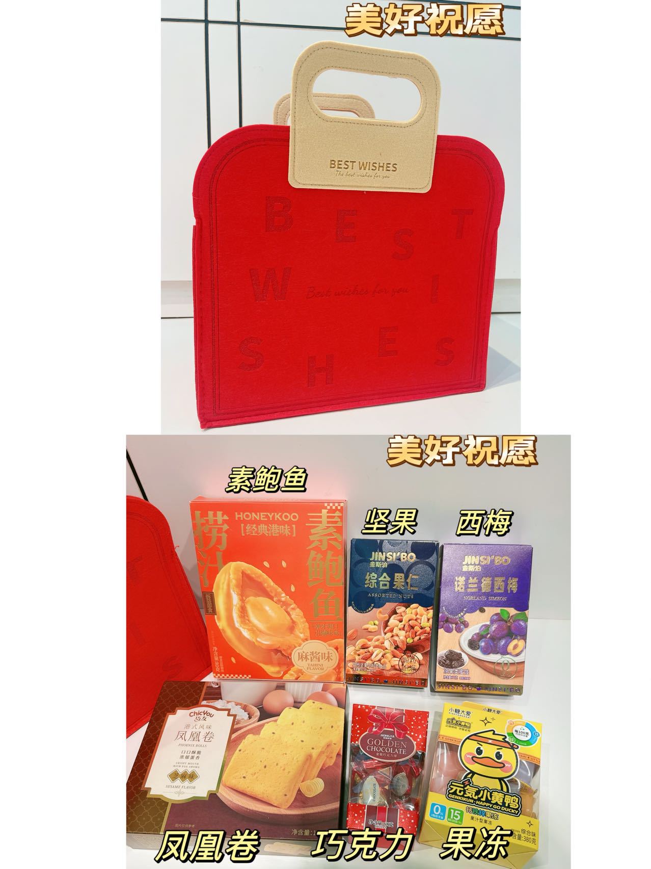 핸드헬드 펠트백에 대한 최고의 소원 새해 상품 선물 상자 비즈니스 음식 동반자 선물 가방 새해 상품 그룹 복지 조달스토어 가기