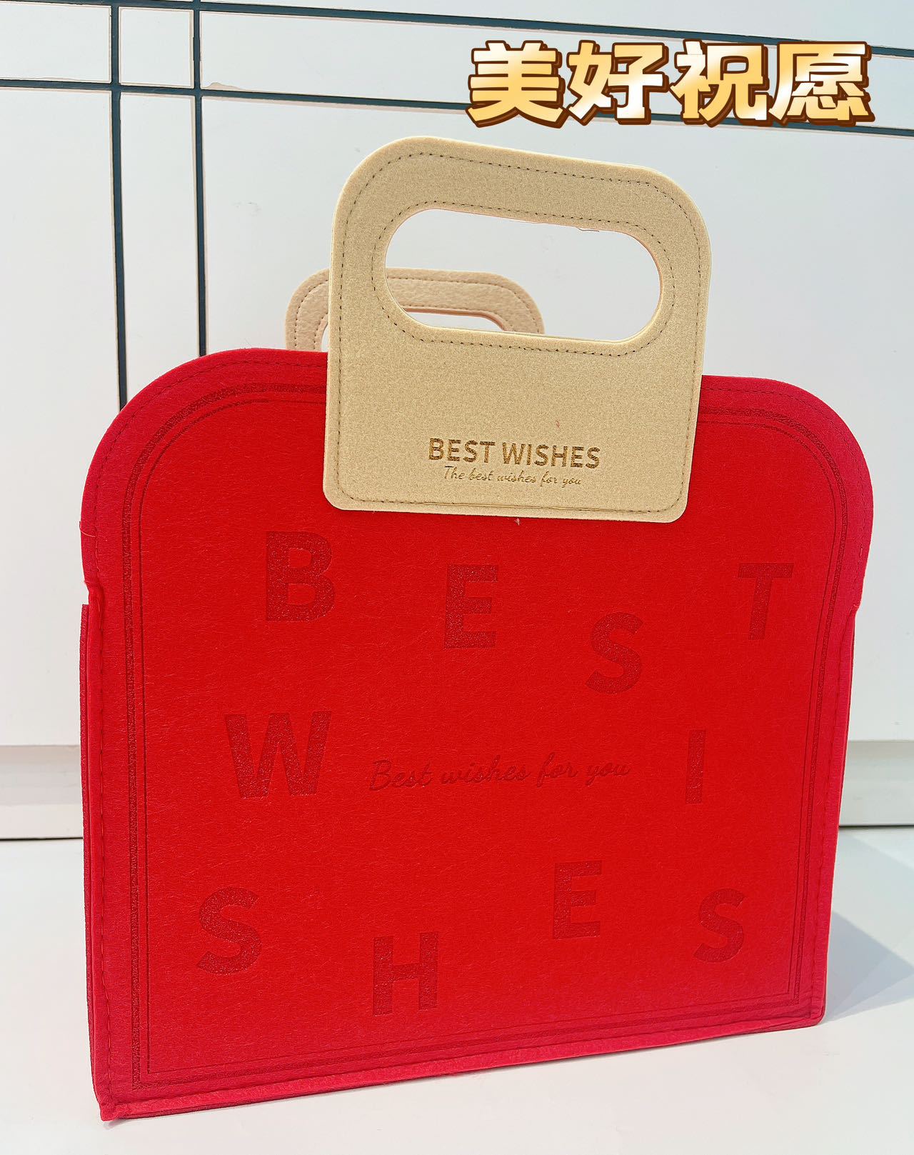 핸드헬드 펠트백에 대한 최고의 소원 새해 상품 선물 상자 비즈니스 음식 동반자 선물 가방 새해 상품 그룹 복지 조달