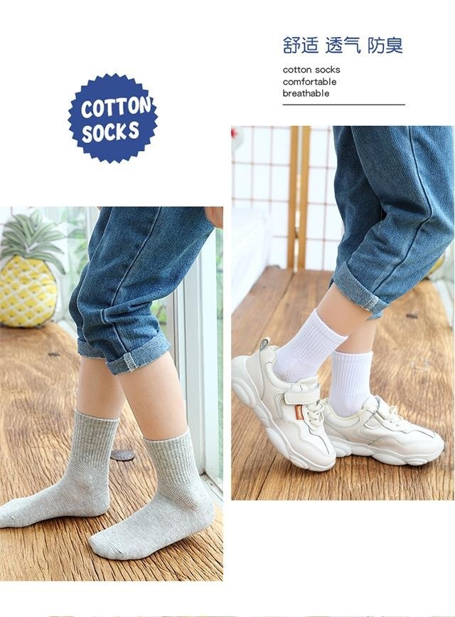 어린이 양말 봄과 여름 소년과 소녀 학생 중 큰 어린이 스포츠 통기성 땀 흡수 튜브 봄과 가을 순수한 흰색스토어 가기