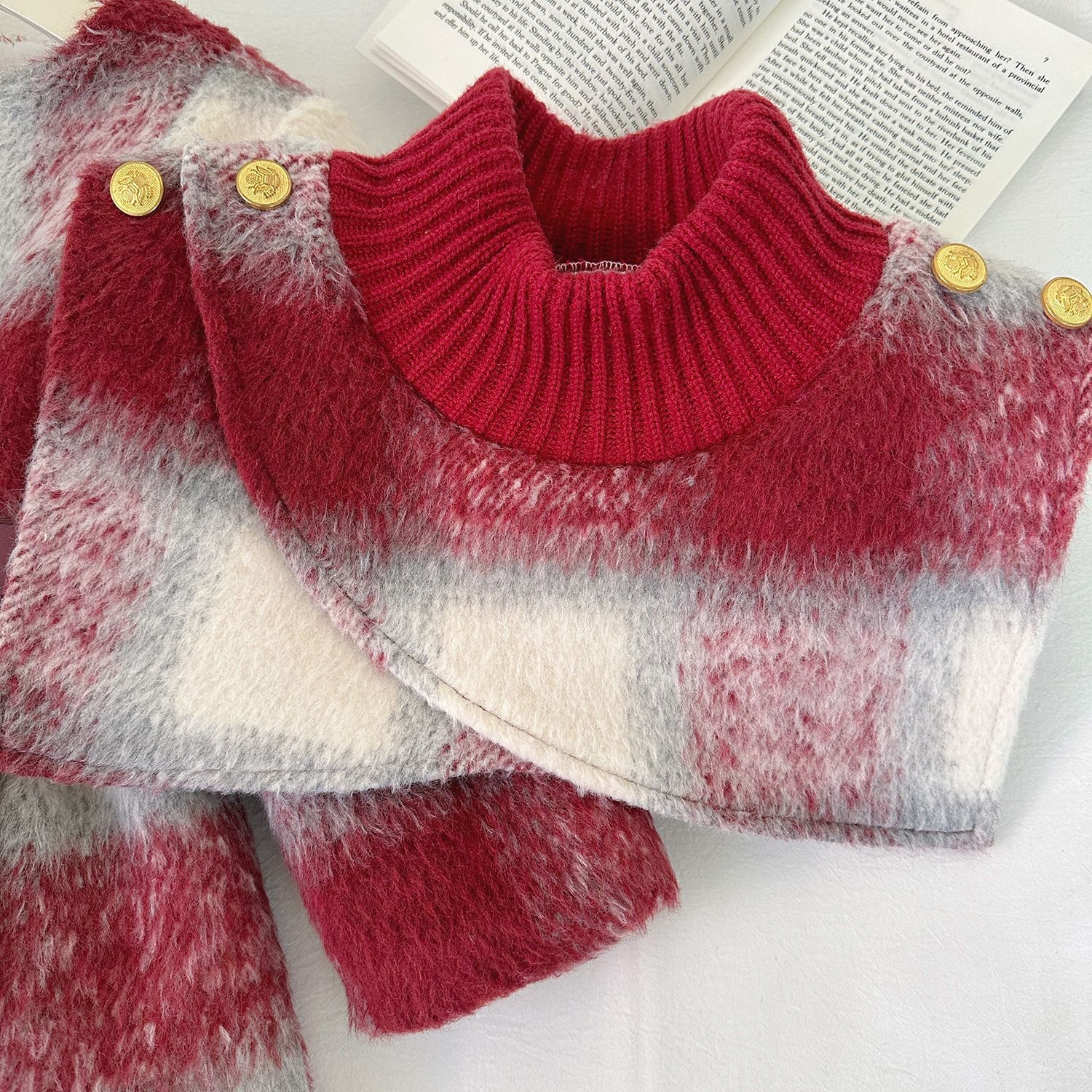 여아 겨울 코트 2025 신상 중소 아동용 플리스 코트 어린이 체크무늬 빨간색 두꺼운 겨울옷 트렌디