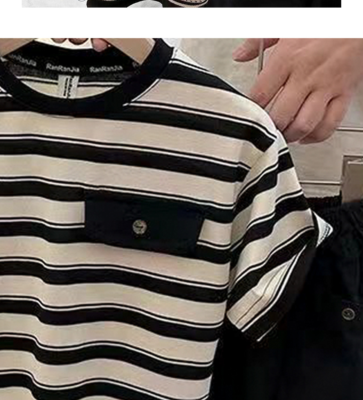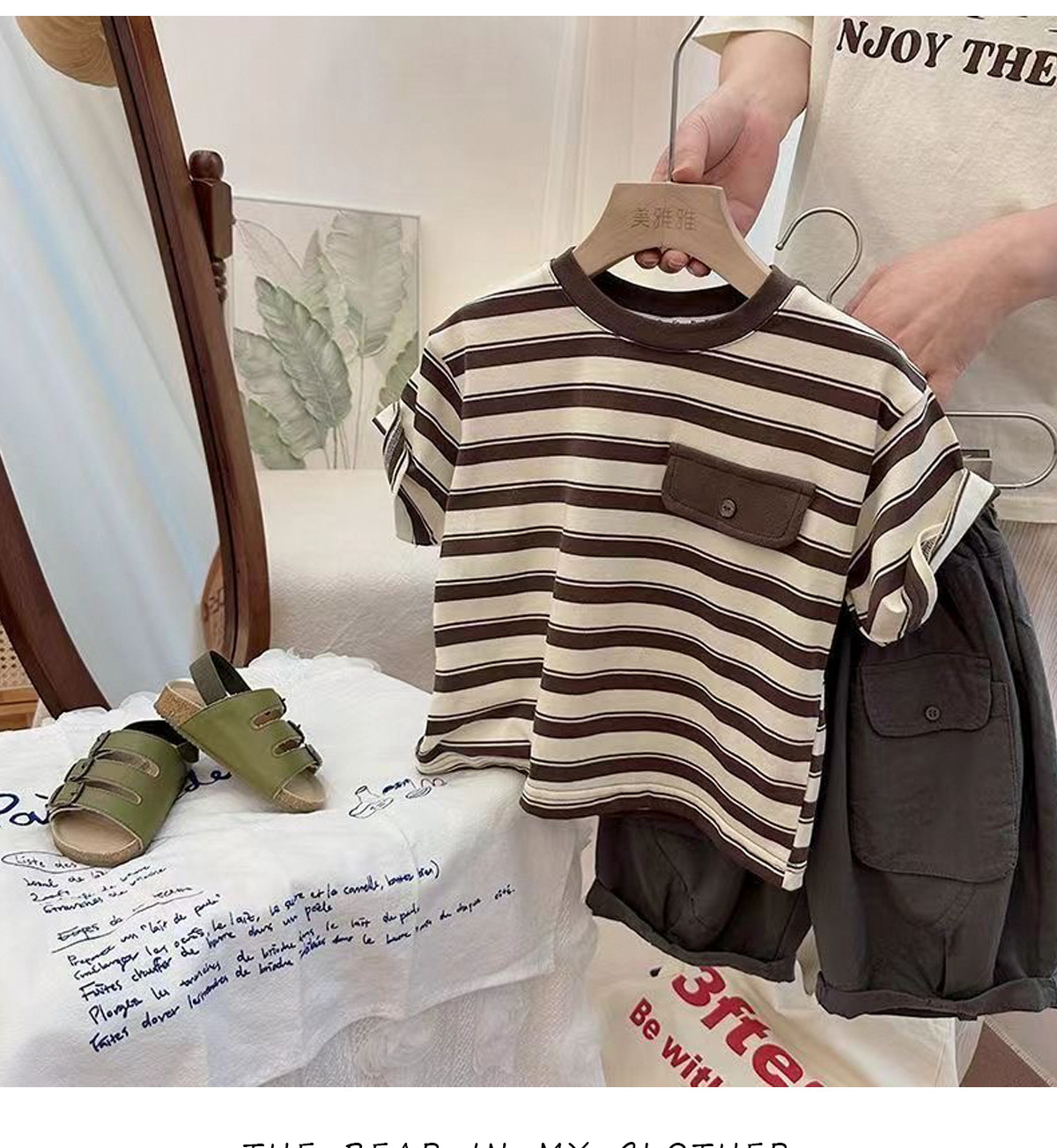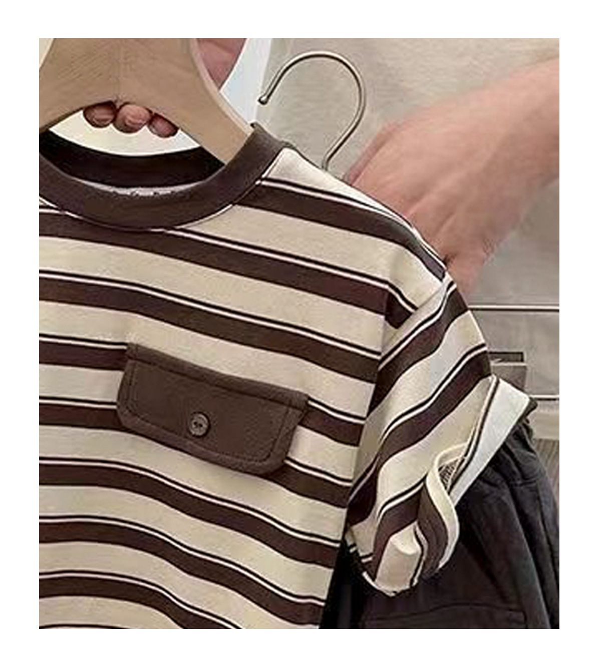 한국 줄무늬 소년 소녀 여름 색상 일치 라운드 넥 캐주얼 짧은 소매 티셔츠 새로운 한국 어린이 하프 슬리브 탑스토어 가기