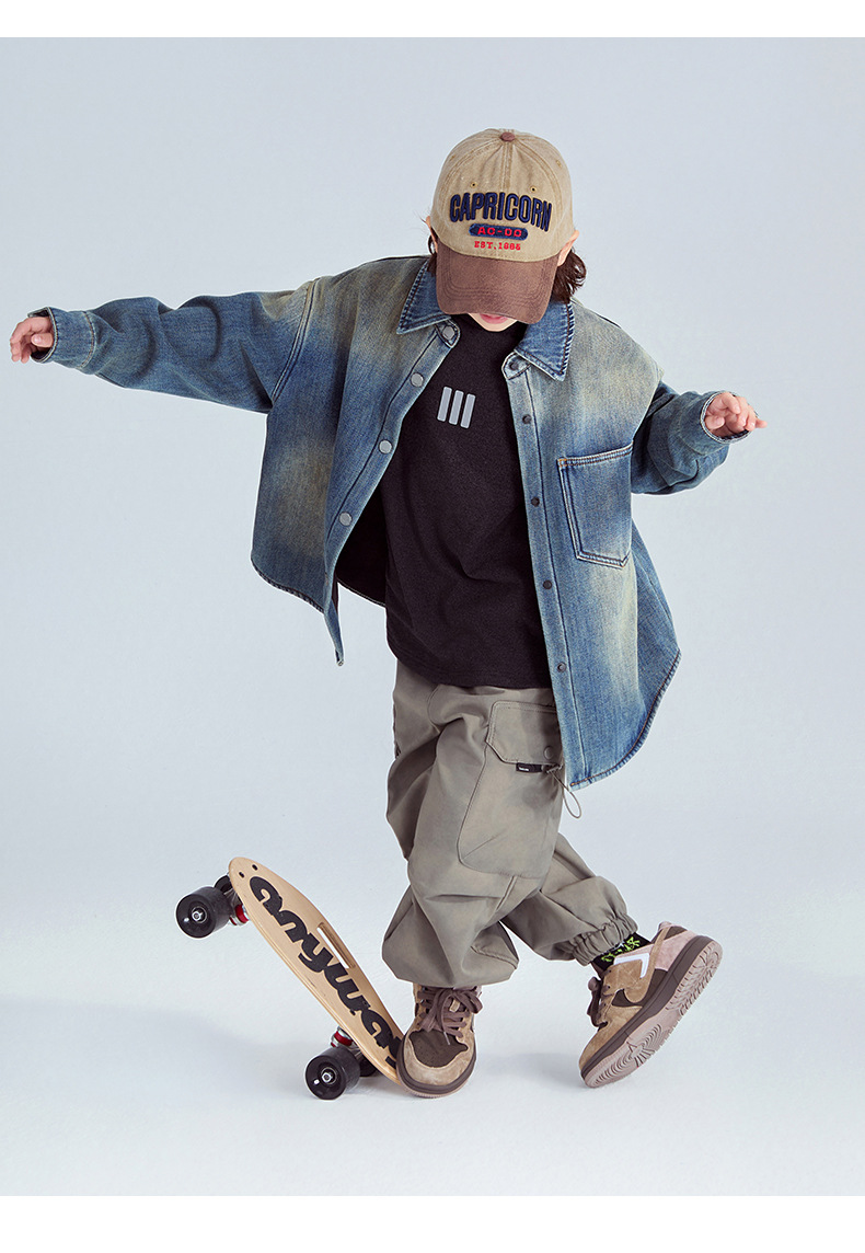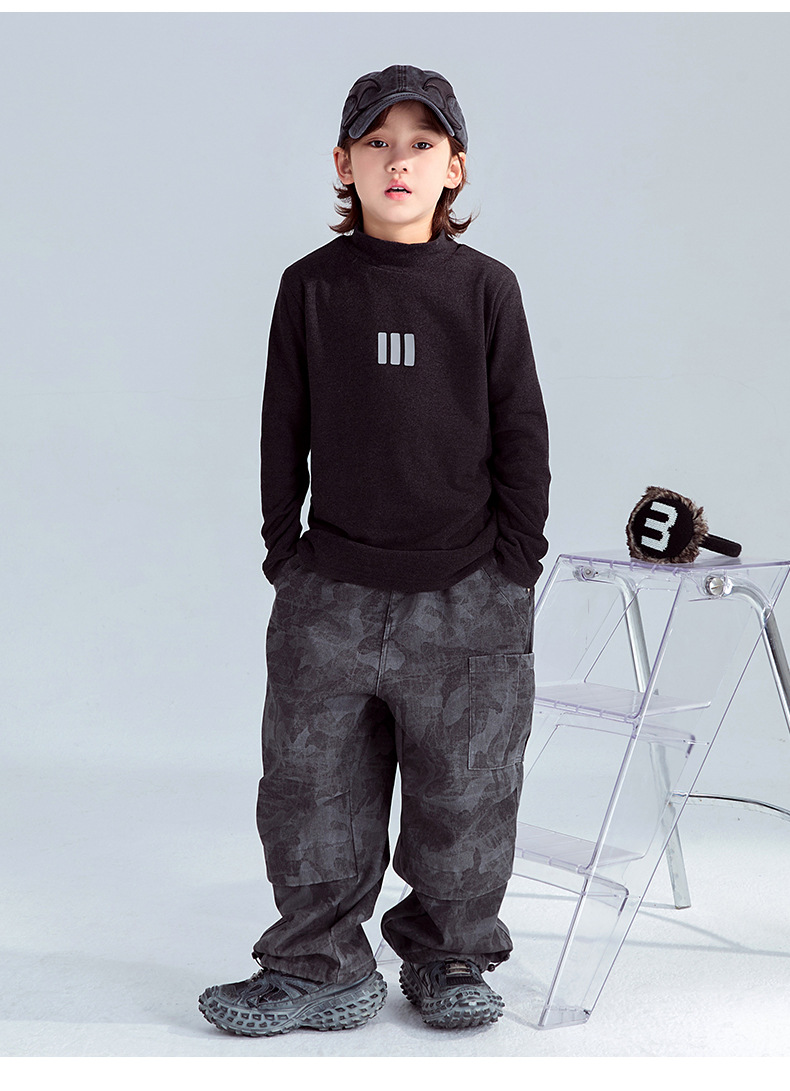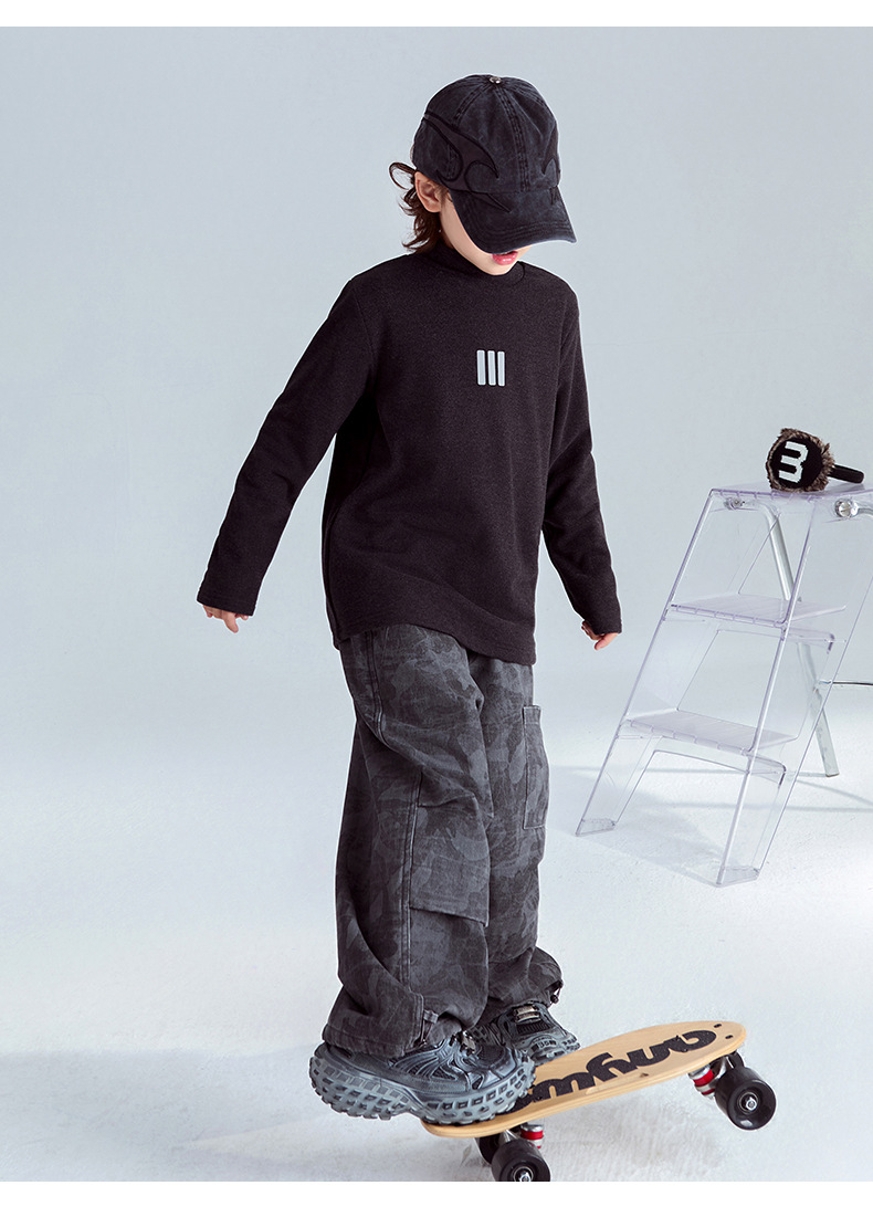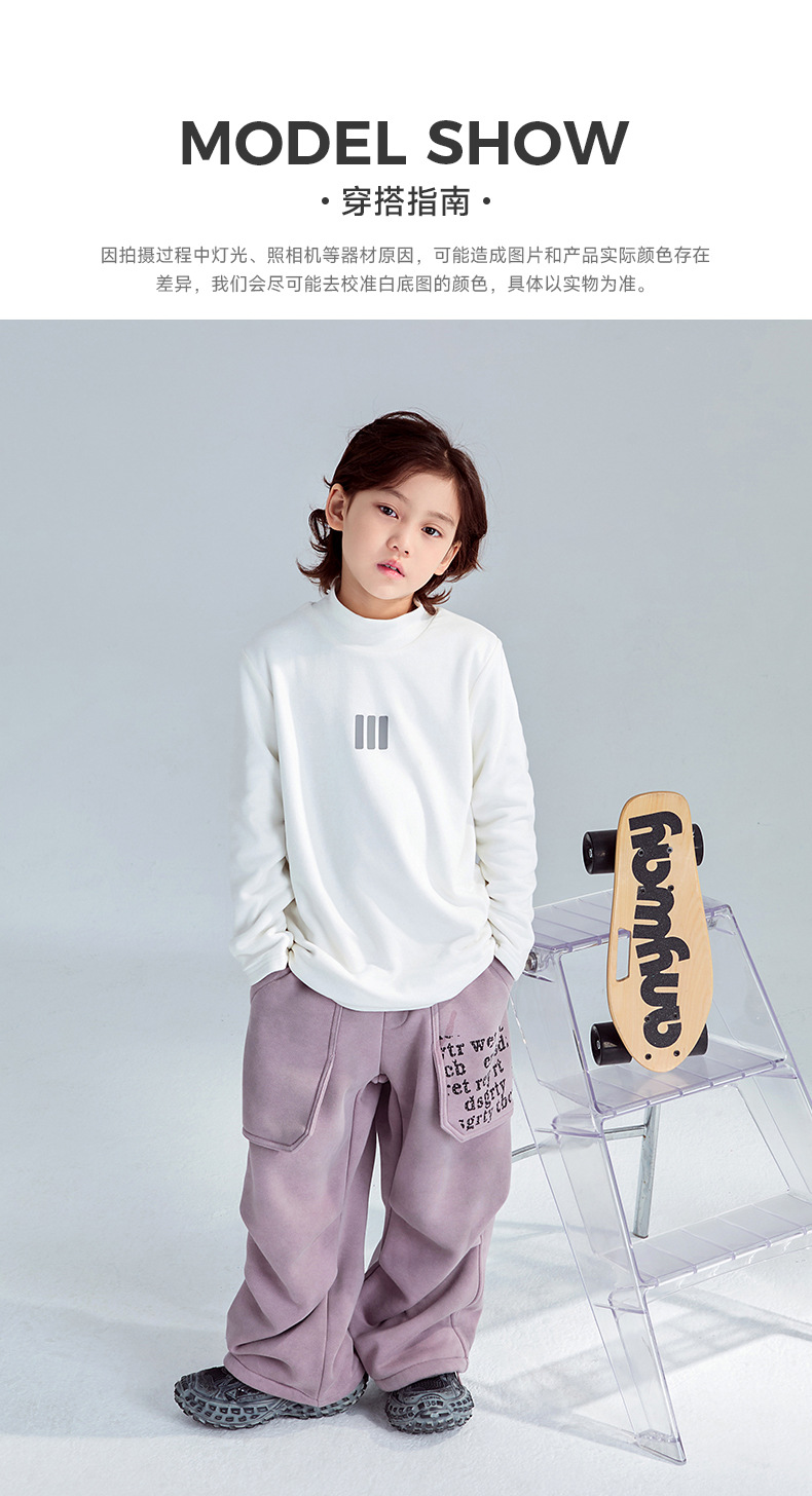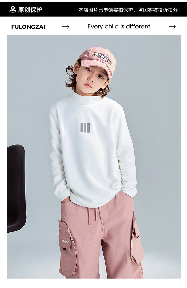 FULONGZAI 부모-자식 아동복 가을, 겨울 새로운 스타일 소년과 소녀 중대형 어린이 벨벳 두꺼운 티셔츠 유행