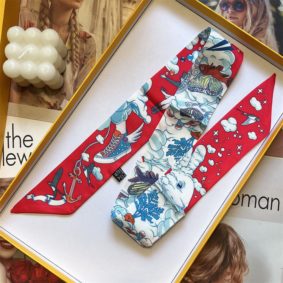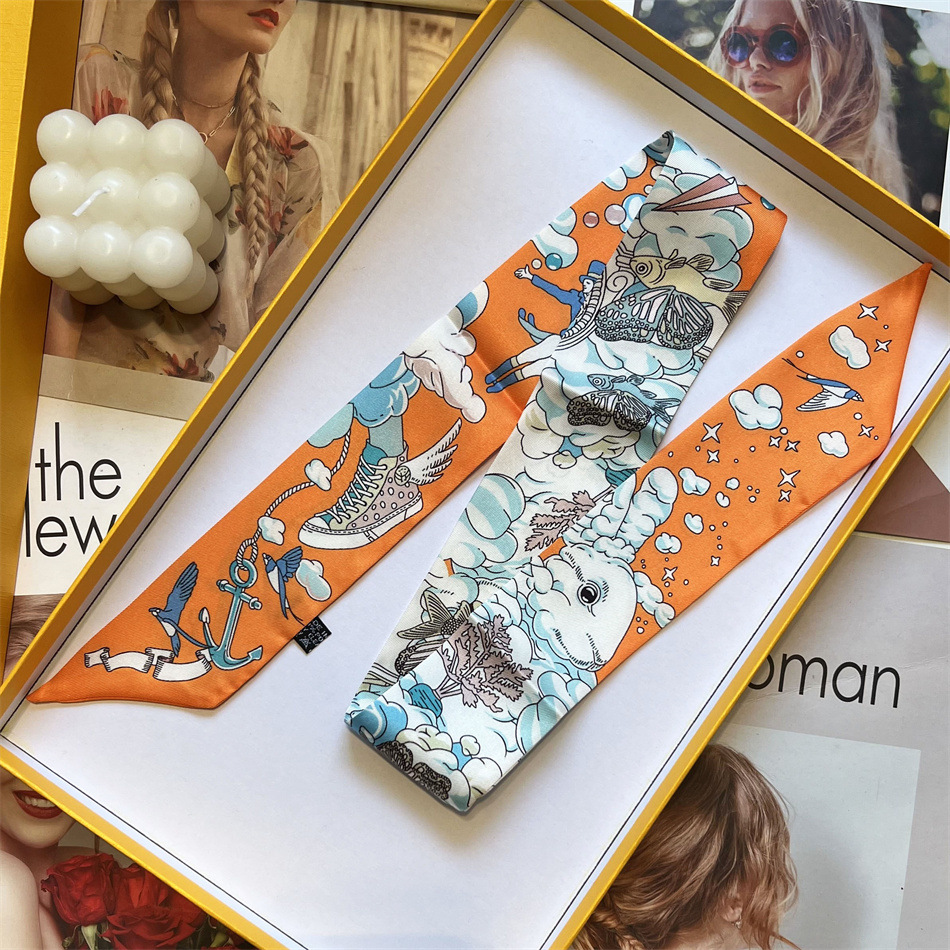 여름 얇은 하이 엔드 긴 실크 스카프 장식 가방 핸들 리본 넥타이 가방 리본 여성의 2024 새로운 스타일