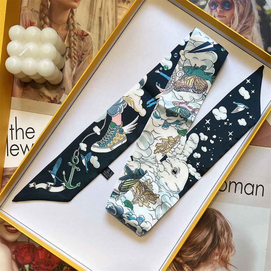 여름 얇은 하이 엔드 긴 실크 스카프 장식 가방 핸들 리본 넥타이 가방 리본 여성의 2024 새로운 스타일스토어 가기