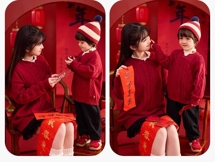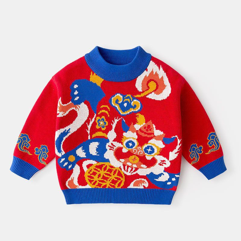 [연간 스웨터 컬렉션] 낙서 어린이 설날 스웨터 소년 설날복 걸스 니트 스웨터 베이비 아동복스토어 가기