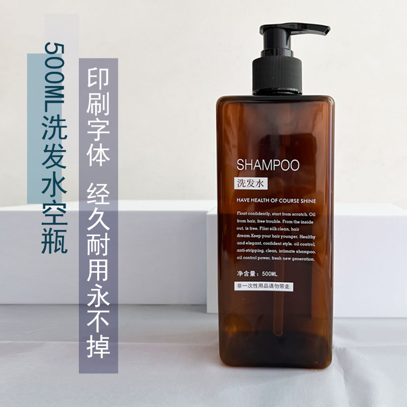 • 갈색으로 인쇄된 샴푸 글꼴이 있는 500ML 정사각형 병
