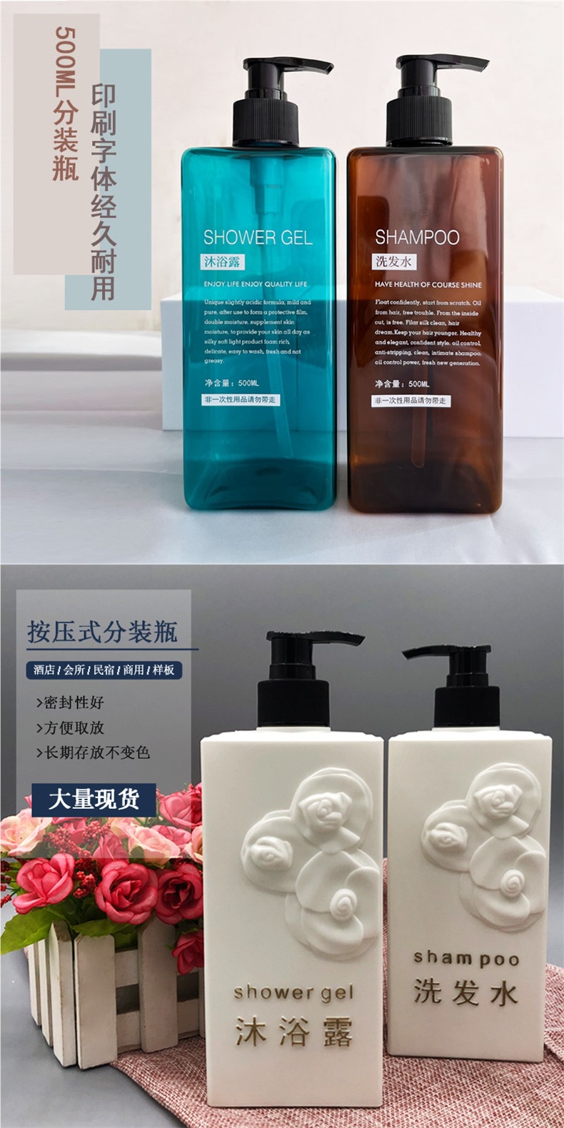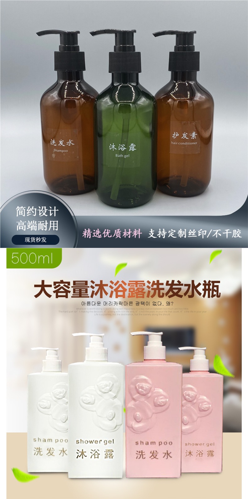 500ml 호텔 욕실 컨디셔너 병 샴푸 바디 비누 프레스 타입 서브 포장 플라스틱 빈 병 세트