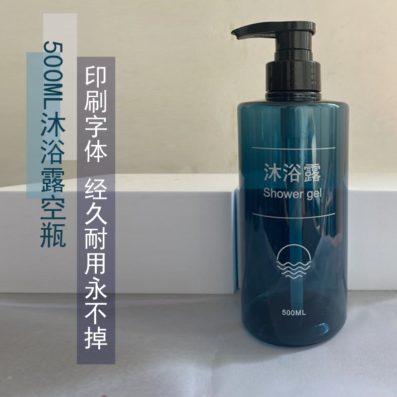 • 500ML 원형 파란색 인쇄 샤워 젤 글꼴