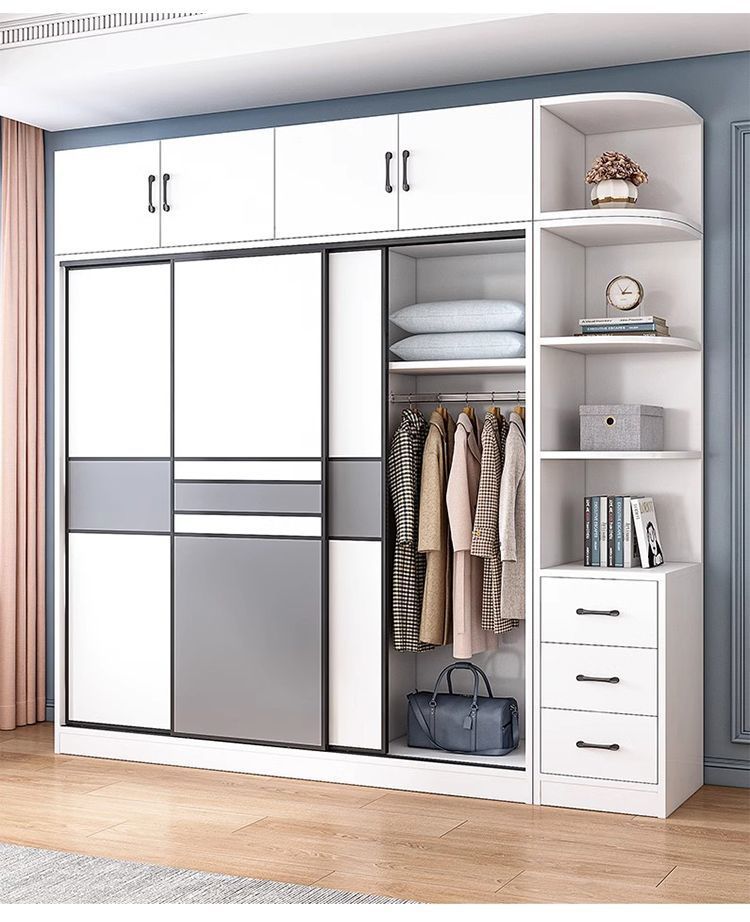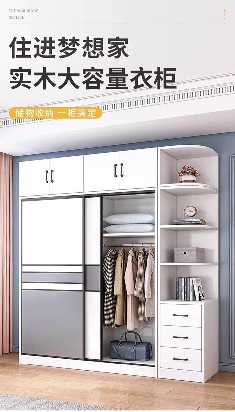 단단한 나무 옷장 가정용 침실 슬라이딩 도어 저장 캐비닛 노르딕 임대 주택 작은 아파트 어린이 대형 옷장스토어 가기