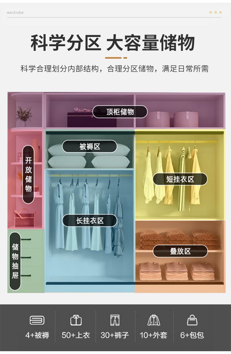 단단한 나무 옷장 가정용 침실 슬라이딩 도어 저장 캐비닛 노르딕 임대 주택 작은 아파트 어린이 대형 옷장