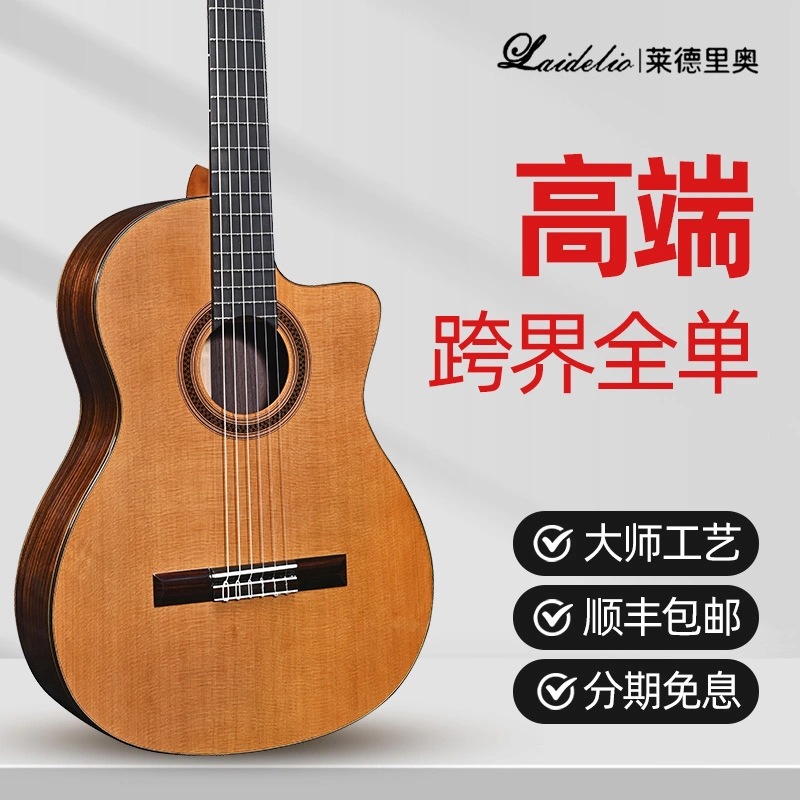 Ledrio 하이 엔드 풀 싱글 크로스 보더 클래식 기타 나일론 스트링 누락 앵글 일렉트릭 박스 기타 손가락 연주 빨간 소나무 39 인치