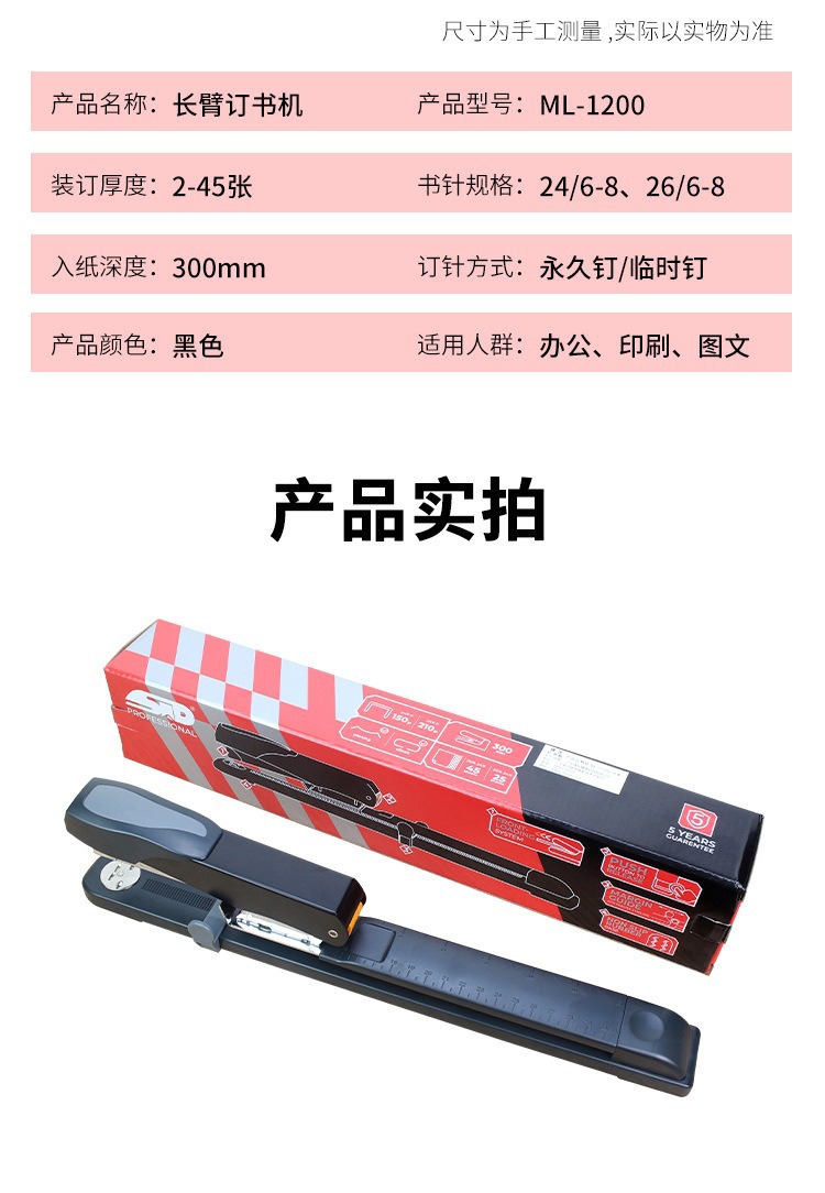 깃발 ML-1200 승마 스테이플러 사무실 무거운 긴 팔 스테이플러 두꺼운 45 페이지 중간 스티치 스테이플러