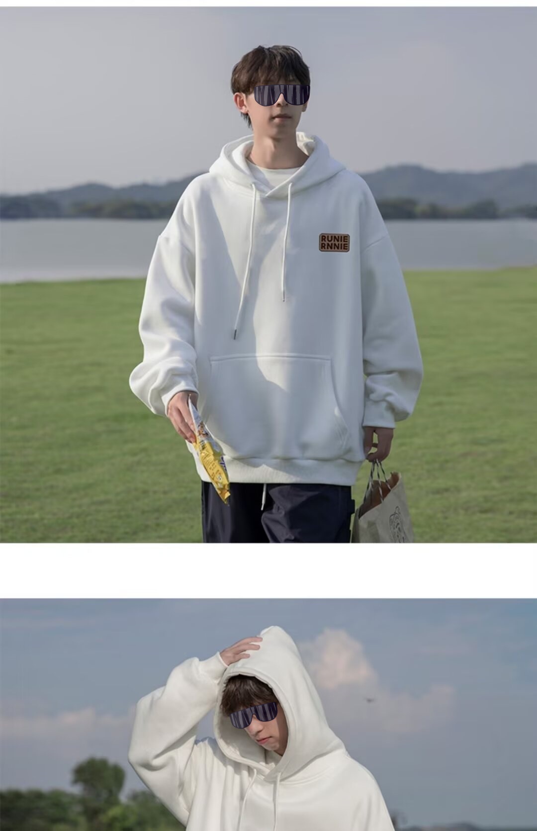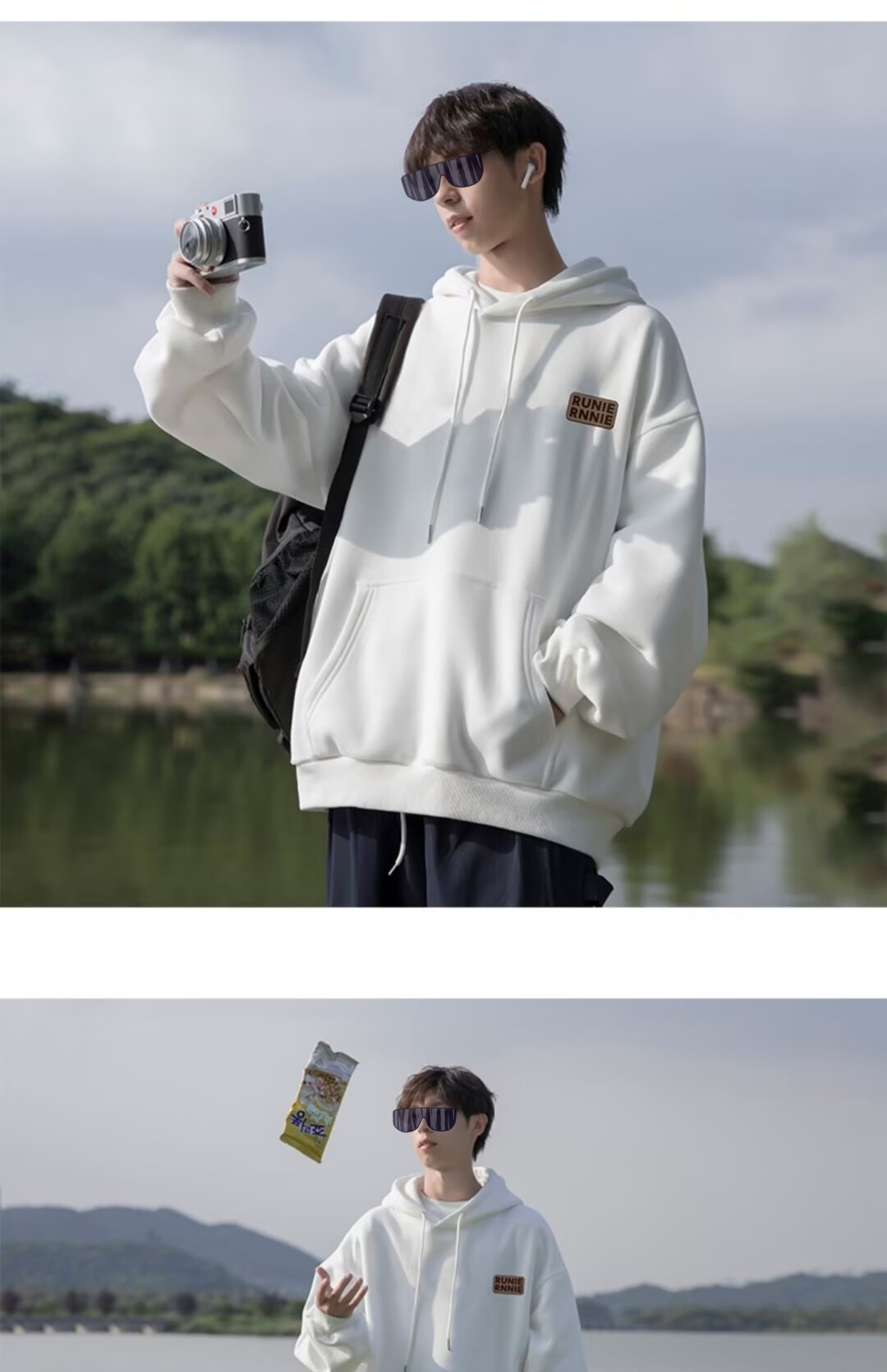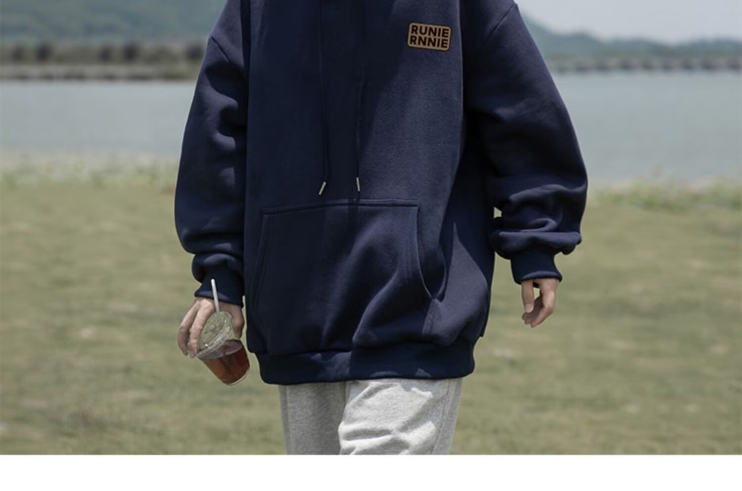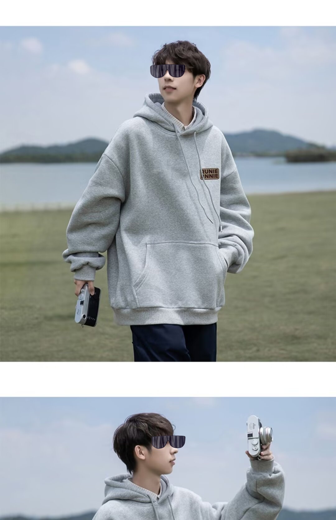 네이비 블루 후드 티셔츠 남성 봄, 가을 2024 새로운 트렌디 브랜드 헤비 겨울 스타일 벨벳 두꺼운 루즈 자켓스토어 가기
