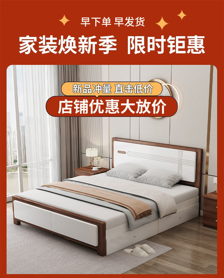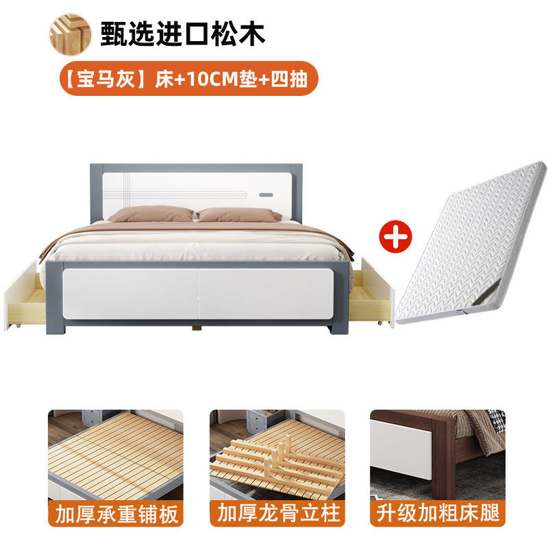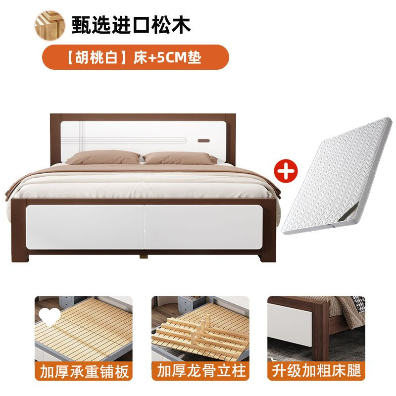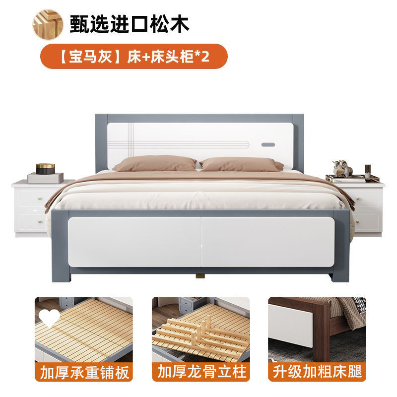 전체 단단한 나무 침대 간단한 현대 더블 침대 미터 마스터 침실 큰 침대 홈 임대 집 저장 침대 결혼식스토어 가기