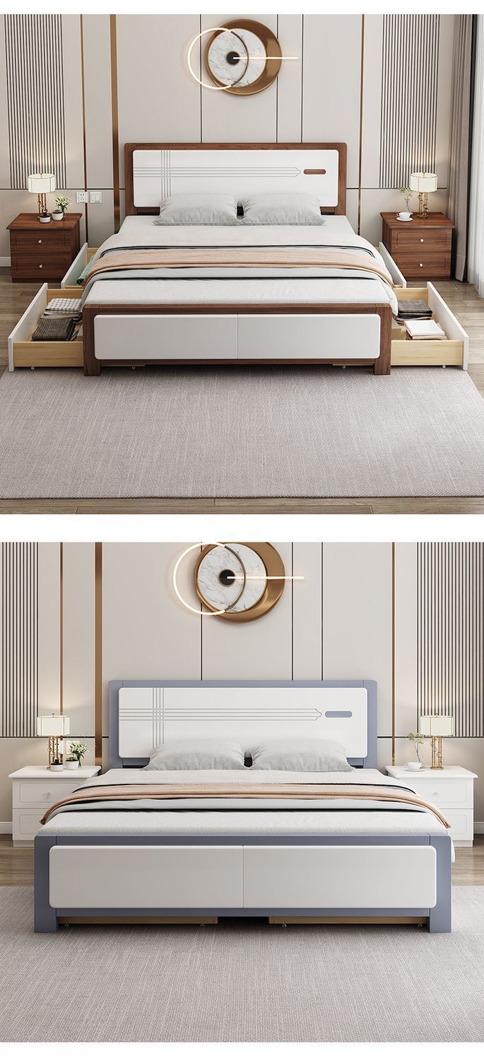 전체 단단한 나무 침대 간단한 현대 더블 침대 미터 마스터 침실 큰 침대 홈 임대 집 저장 침대 결혼식