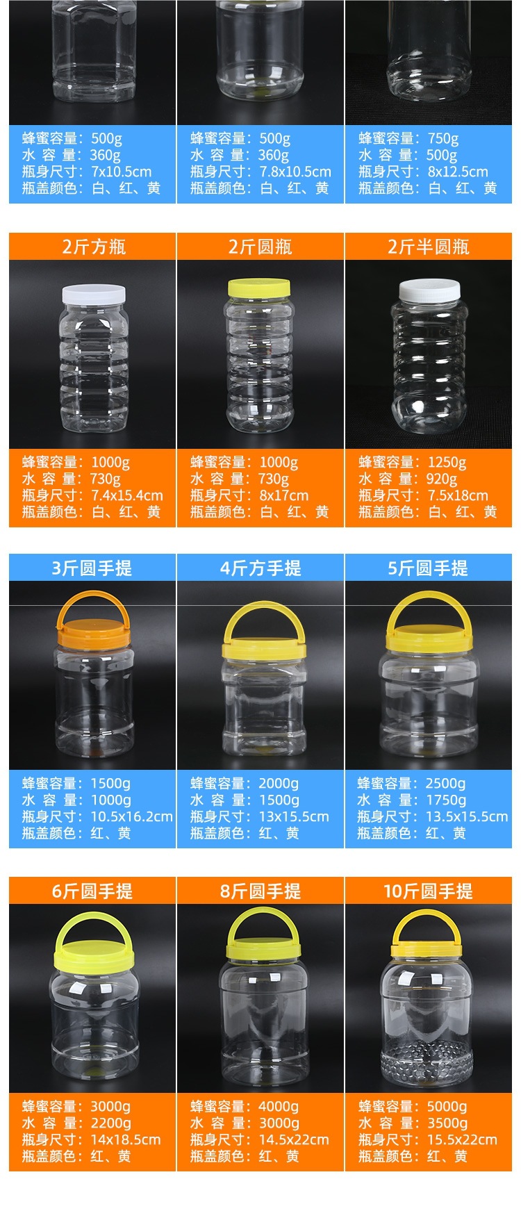 • 1.5kg 허니병(물 1.0kg 개) 2개, 내부캡 포함