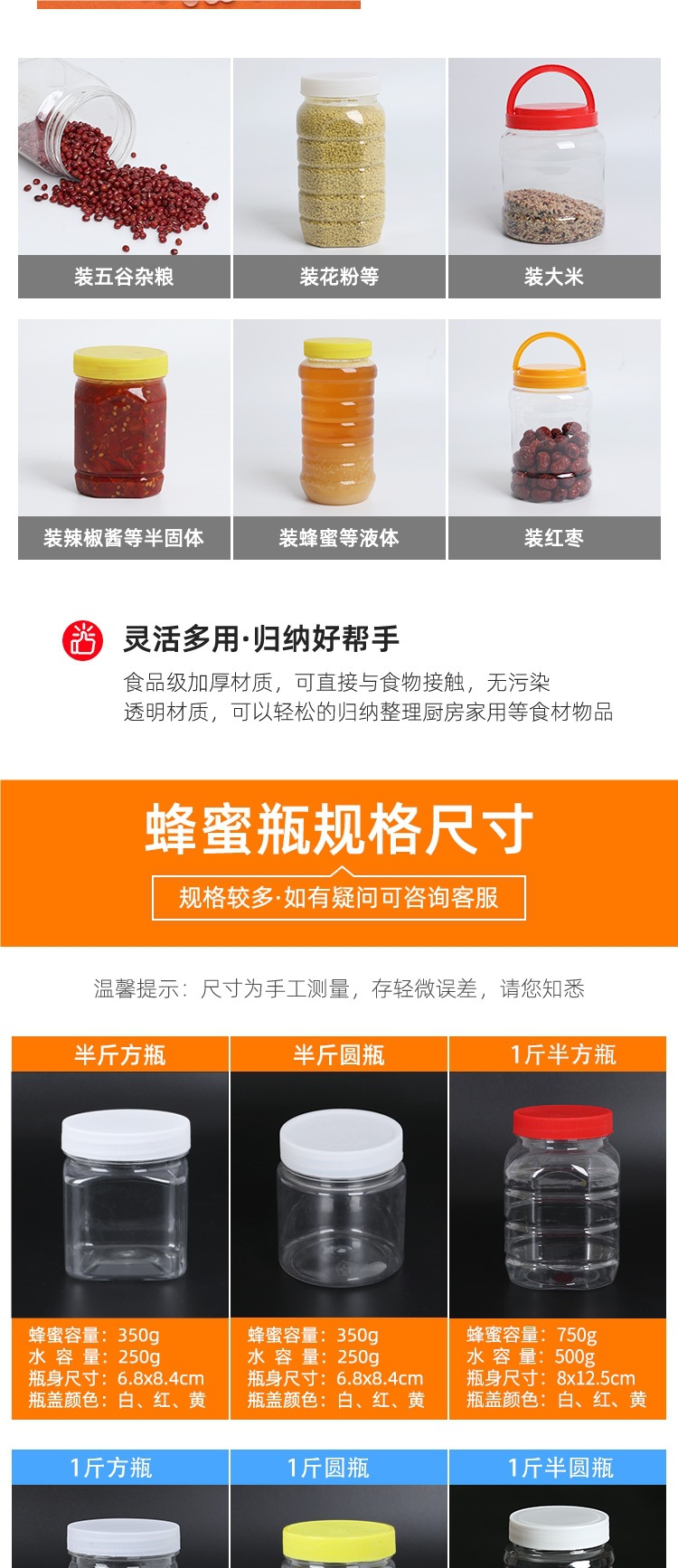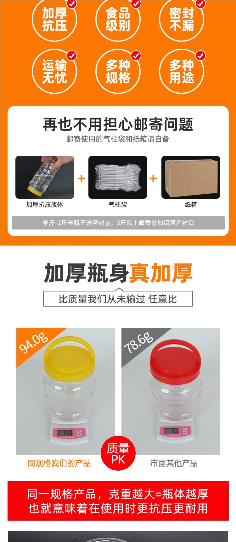 밀폐 된 저장 탱크 꿀 병 플라스틱 병 뚜껑 투명 큰 피클 병 2kg 3kg 5kg 6kg 10kg스토어 가기