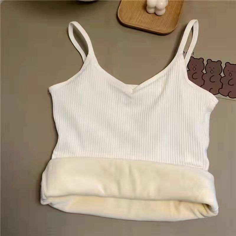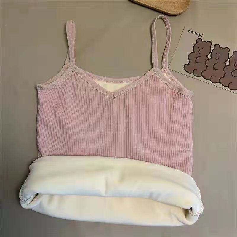 겨울철 활용도 높은 따뜻한 여성용 캐미솔, 학생용 기모 안감 두꺼운 발열 이너웨어, 슬림핏 브이넥 단색 베이스 레이어