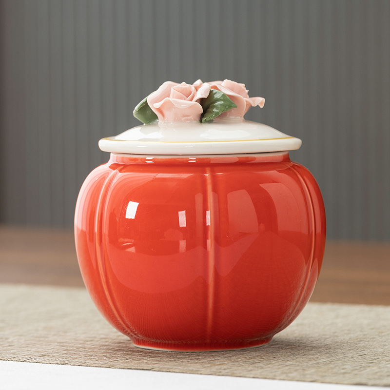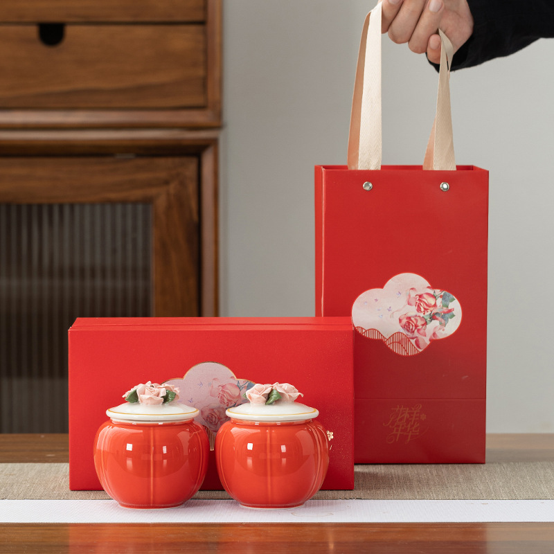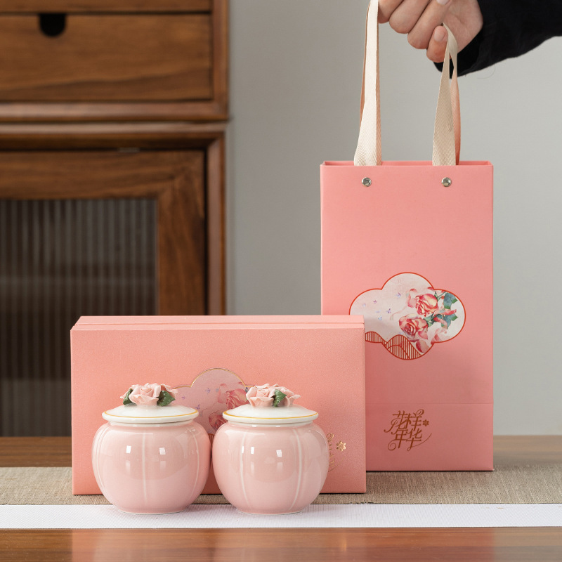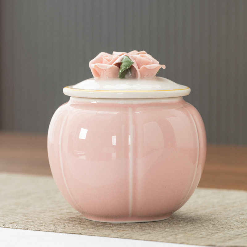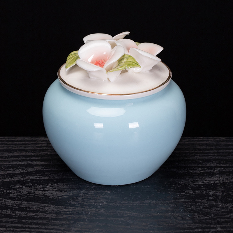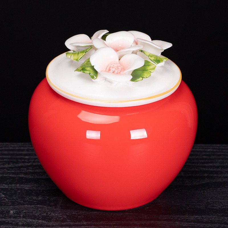 중국 창조적 인 세라믹 차 항아리 반죽 꽃 봉인 항아리 홍차 녹차 스몰 사이즈 포장 빈 선물 상자 회사 동반 선물스토어 가기