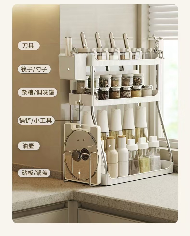 주방 보관 랙 다층 나이프 양념 보관 랙 조미료 테이블 탑 다기능 하이라이트 가정용 조미료 선반