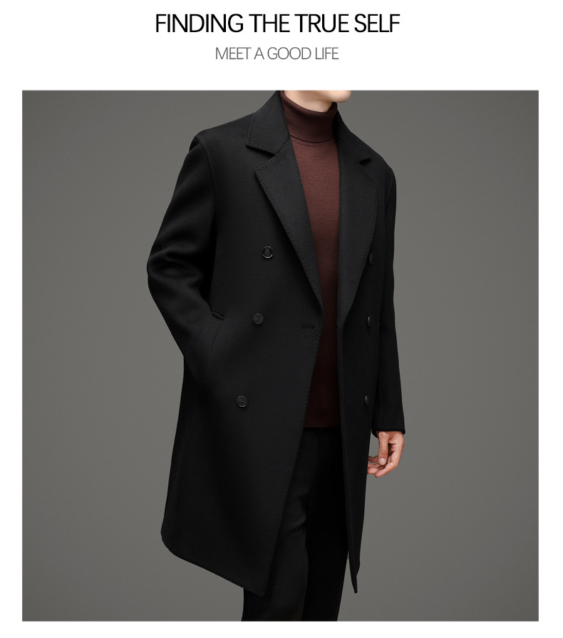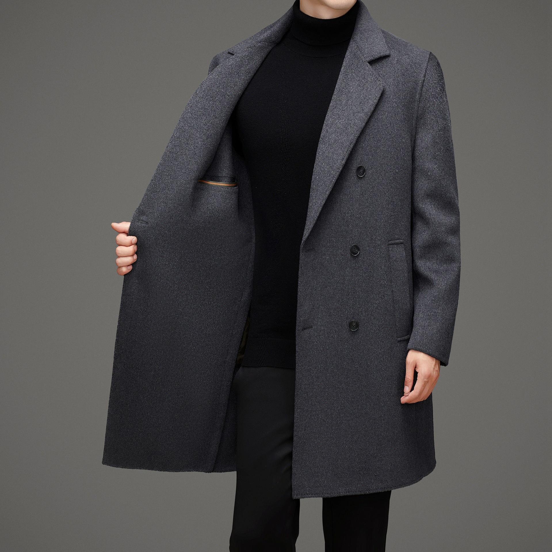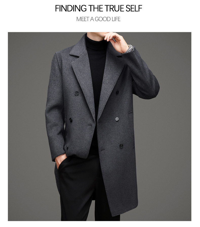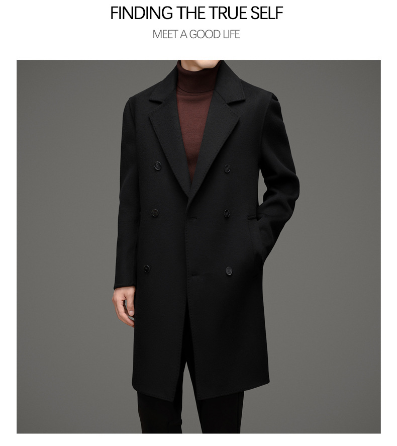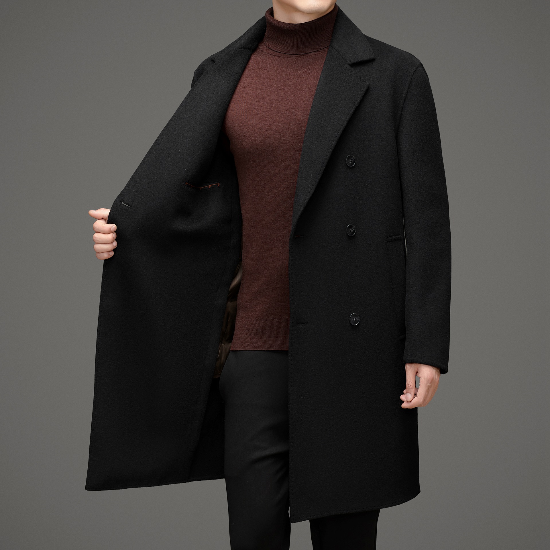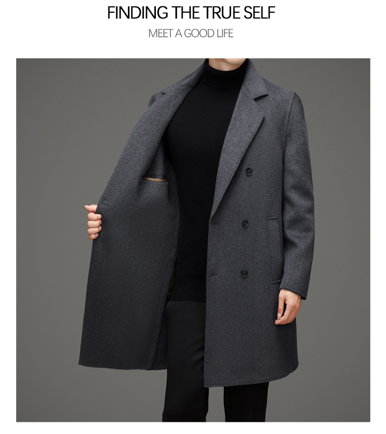 카운터 하이 엔드 가을 및 겨울 남자 롱 울 코트 양면 Ni 다운 라이너 중년 및 청소년을위한 더블 브레스트 재킷스토어 가기