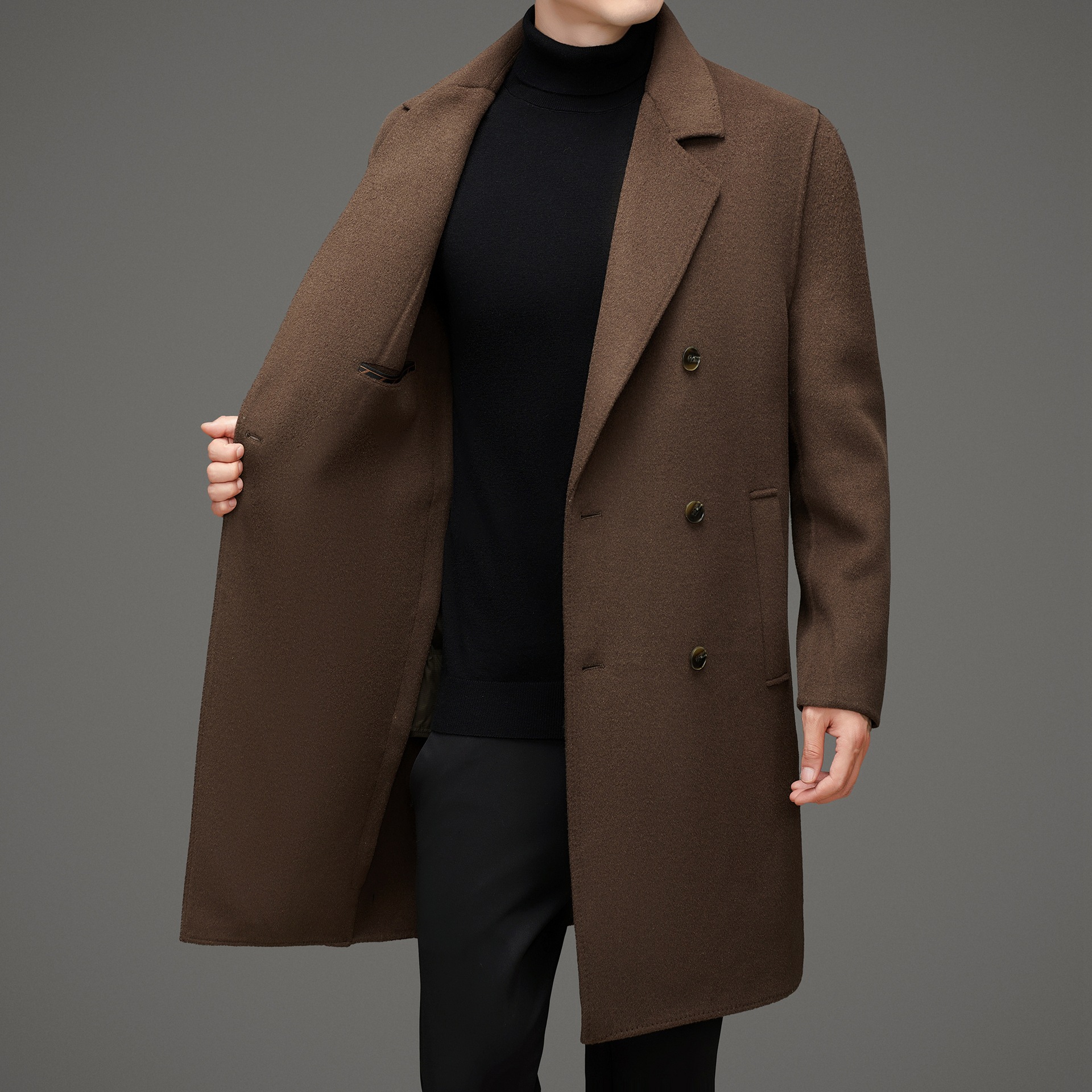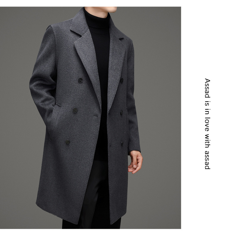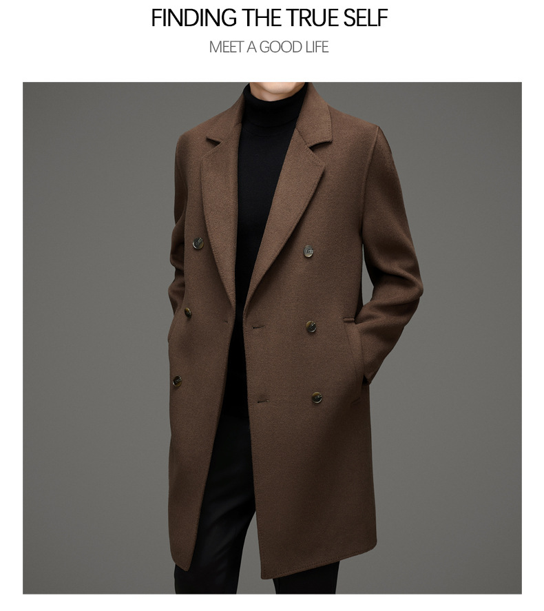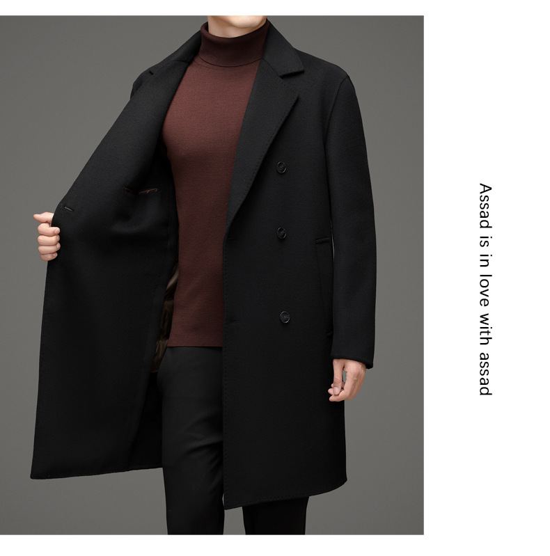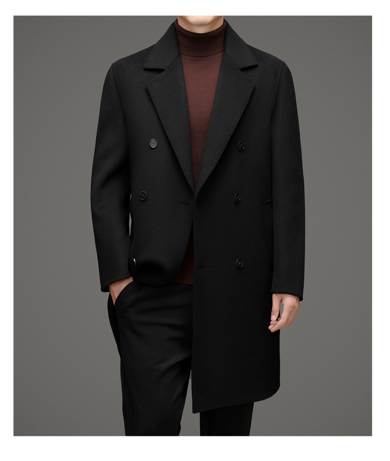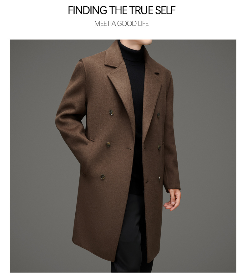 카운터 하이 엔드 가을 및 겨울 남자 롱 울 코트 양면 Ni 다운 라이너 중년 및 청소년을위한 더블 브레스트 재킷스토어 가기