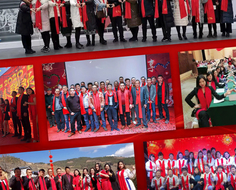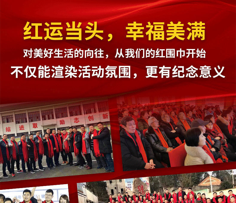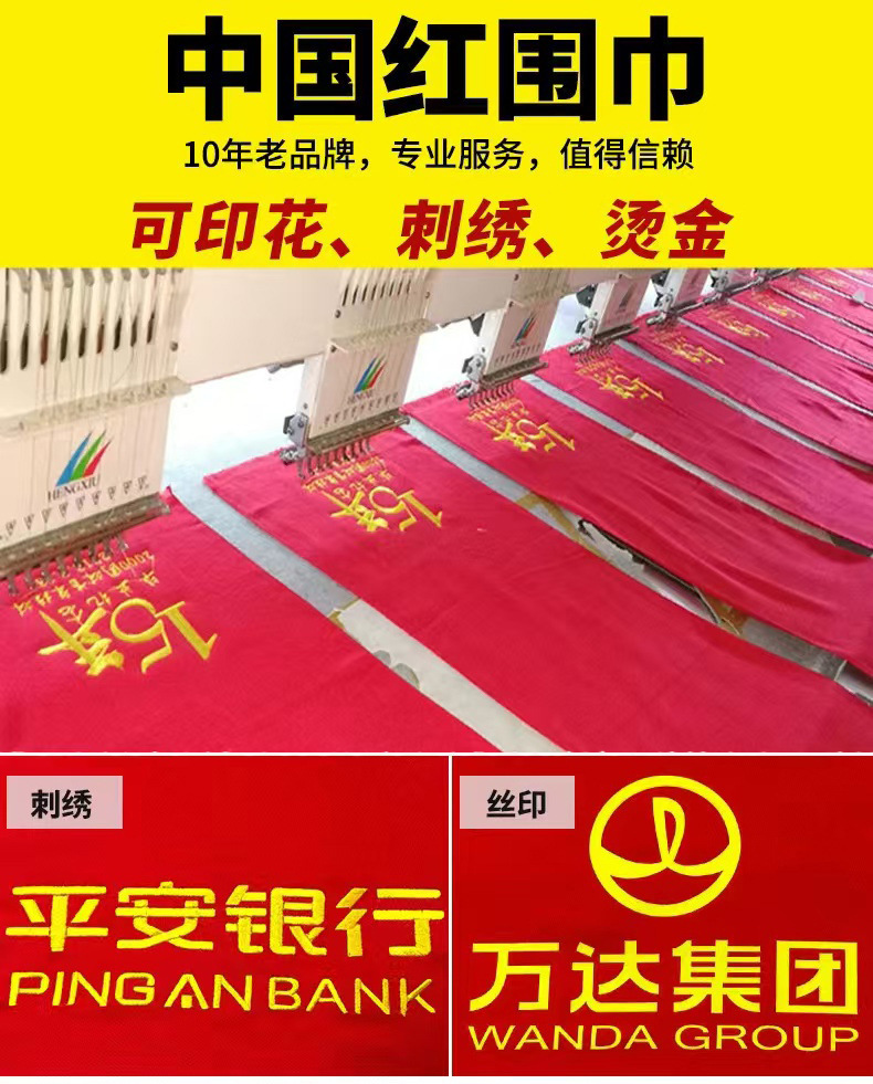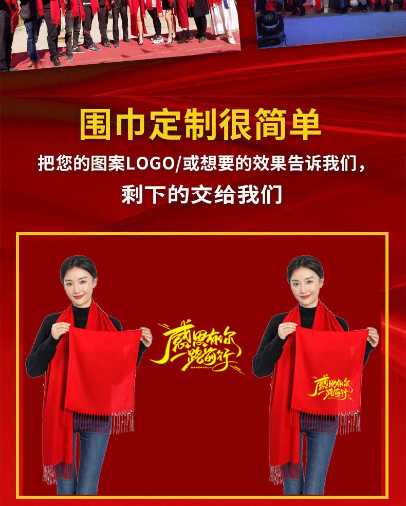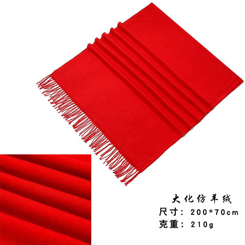 중국 레드 연례 파티 이벤트 빅 레드 스카프 맞춤형 로고 자수 인쇄 선물 동창회 스카프 숄스토어 가기