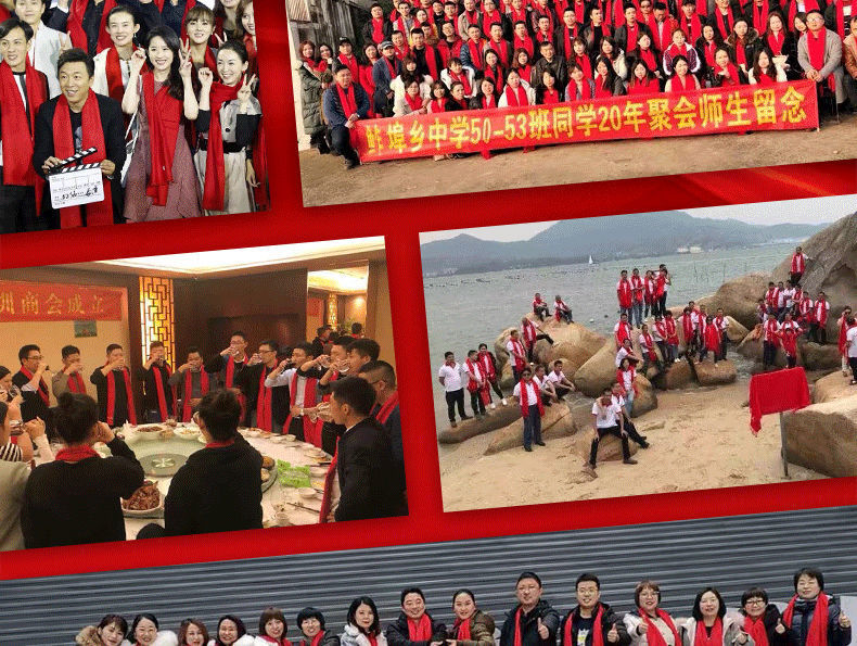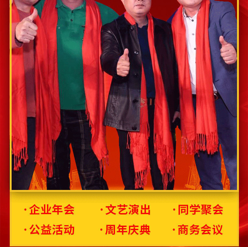 중국 레드 연례 파티 이벤트 빅 레드 스카프 맞춤형 로고 자수 인쇄 선물 동창회 스카프 숄