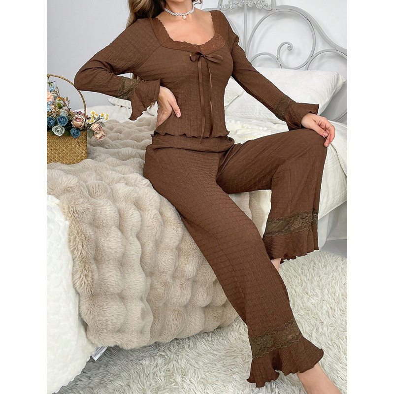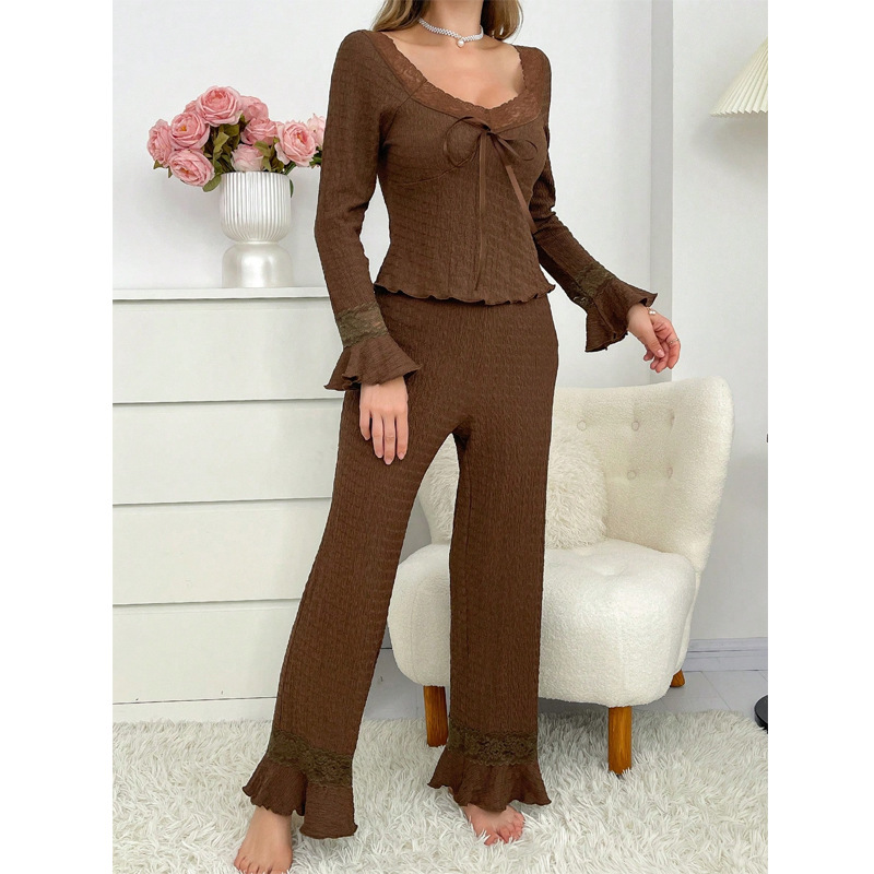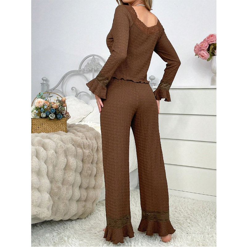 국경 간 달콤한 레이스 파자마 여성 세트 봄과 가을 새로운 유럽과 미국 스타일의 하이 엔드 활 홈 옷 투피스 세트