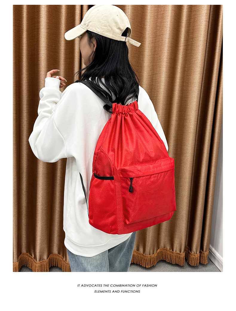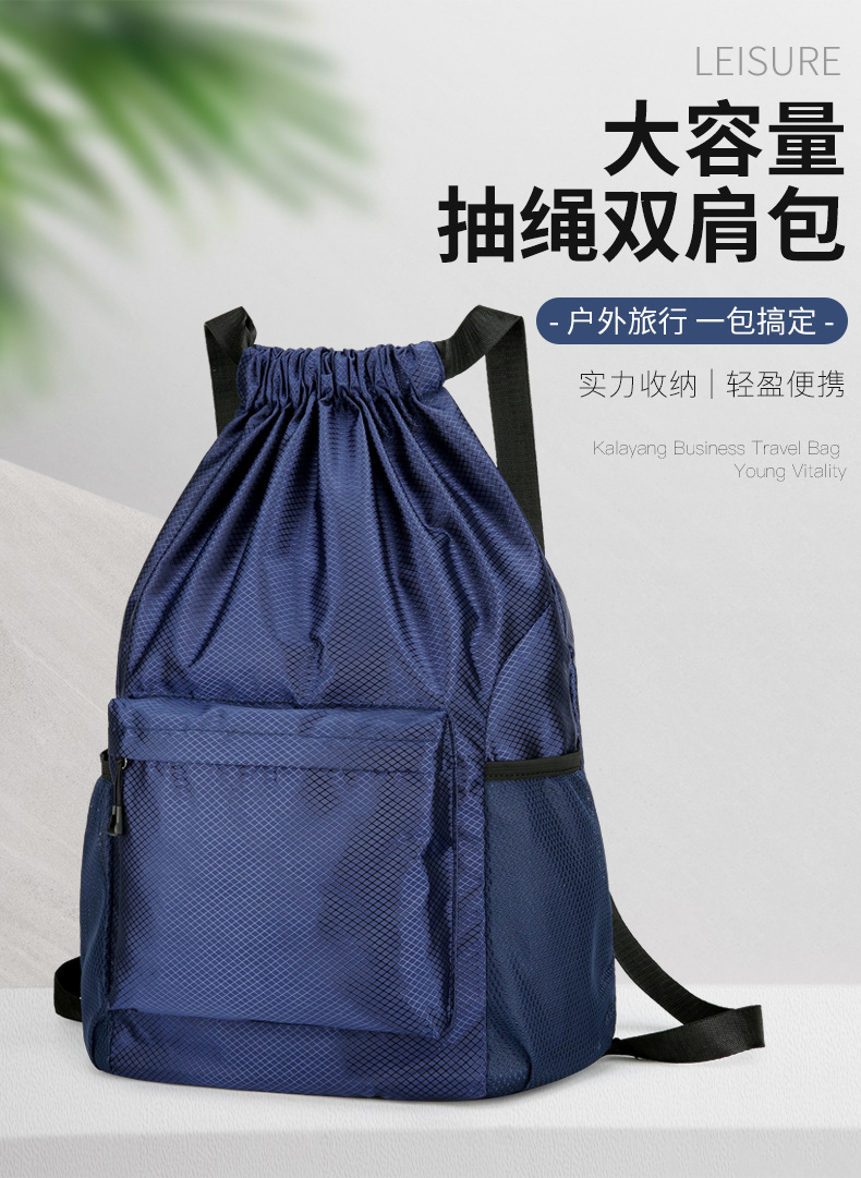 남성용 드로스트링 백팩, 피트니스 농구 백팩, 로고 프린트, 대용량, 발수, 휴대용 수납, 드로스트링 포켓스토어 가기