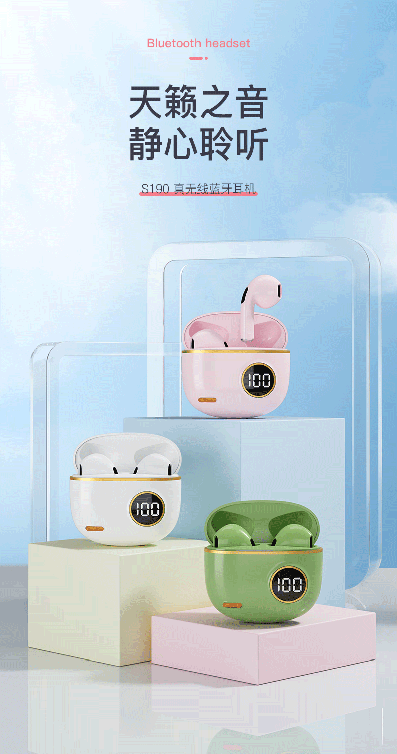S190 무선 tws 블루투스 이어폰 인이어 미니 고급스러운 디자인 대용량 배터리 스포츠용 범용 개인 디자인 생활 방수스토어 가기