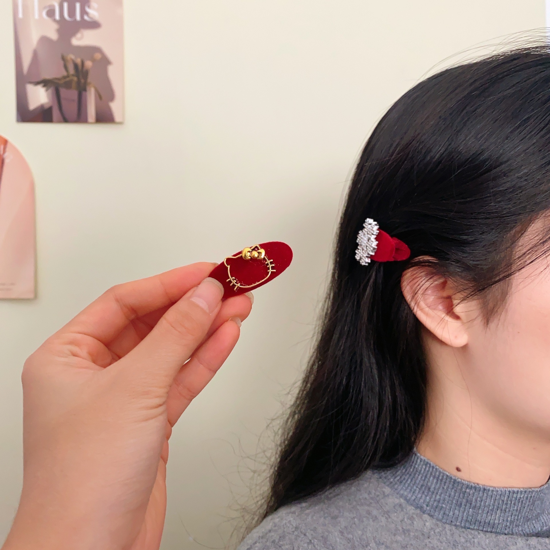 크리스마스 눈송이 고양이 잠금 헤어핀 여성용 라이트 럭셔리 하이 엔드 플래시 다이아몬드 헤어핀 틈새 디자인 절묘한 올 매치 헤어 액세서리스토어 가기