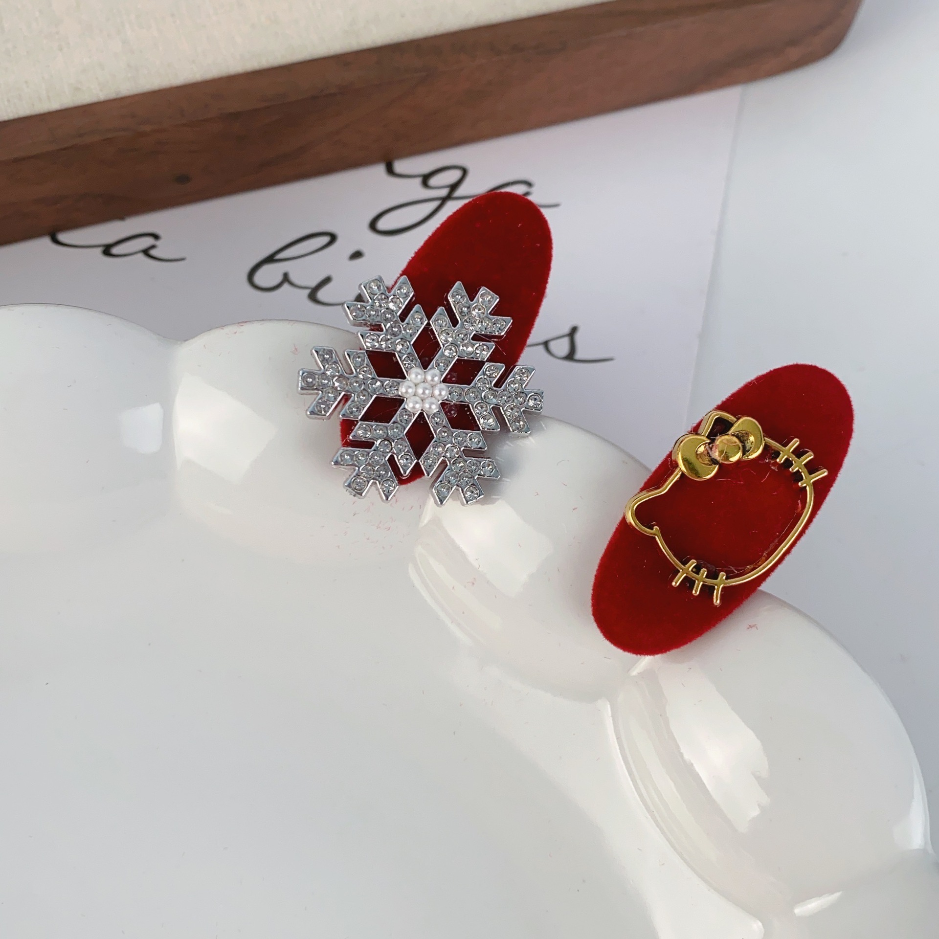 크리스마스 눈송이 고양이 잠금 헤어핀 여성용 라이트 럭셔리 하이 엔드 플래시 다이아몬드 헤어핀 틈새 디자인 절묘한 올 매치 헤어 액세서리