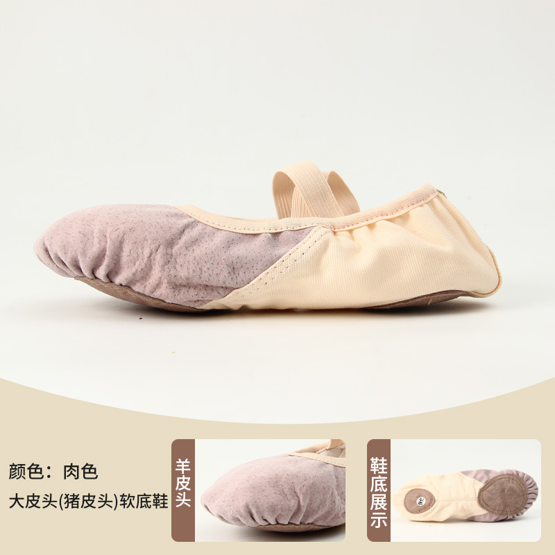 성인 춤 신발 여성 소프트 솔 겨울 중국 클래식 빅 가죽 머리 발레 어린이 여성 춤 연습 고양이 발톱 재고