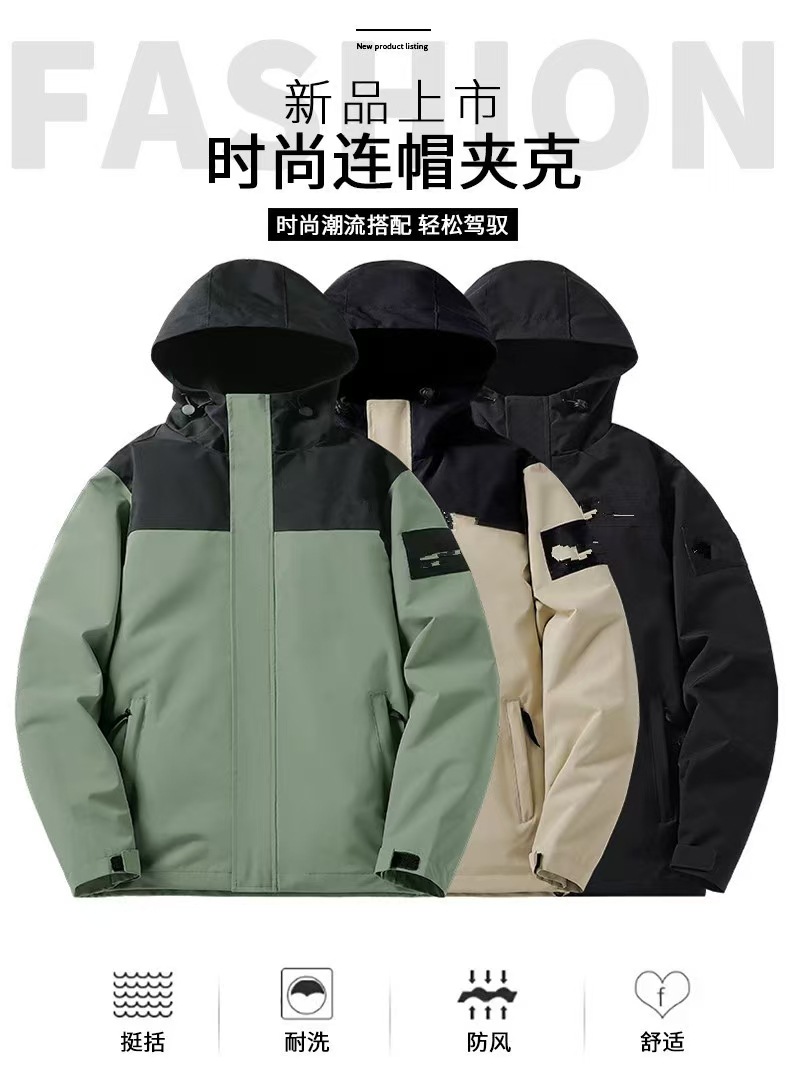 남성용 아웃도어 루즈핏 스포츠웨어 캐주얼 후드 자수 재킷 단층 방풍 방수스토어 가기