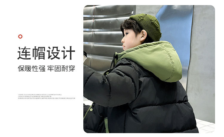 남아용 겨울 두꺼운 면옷 2025년 신상 겨울옷 중대형 어린이 남아용 페이크 투피스 후드 겨울 면옷