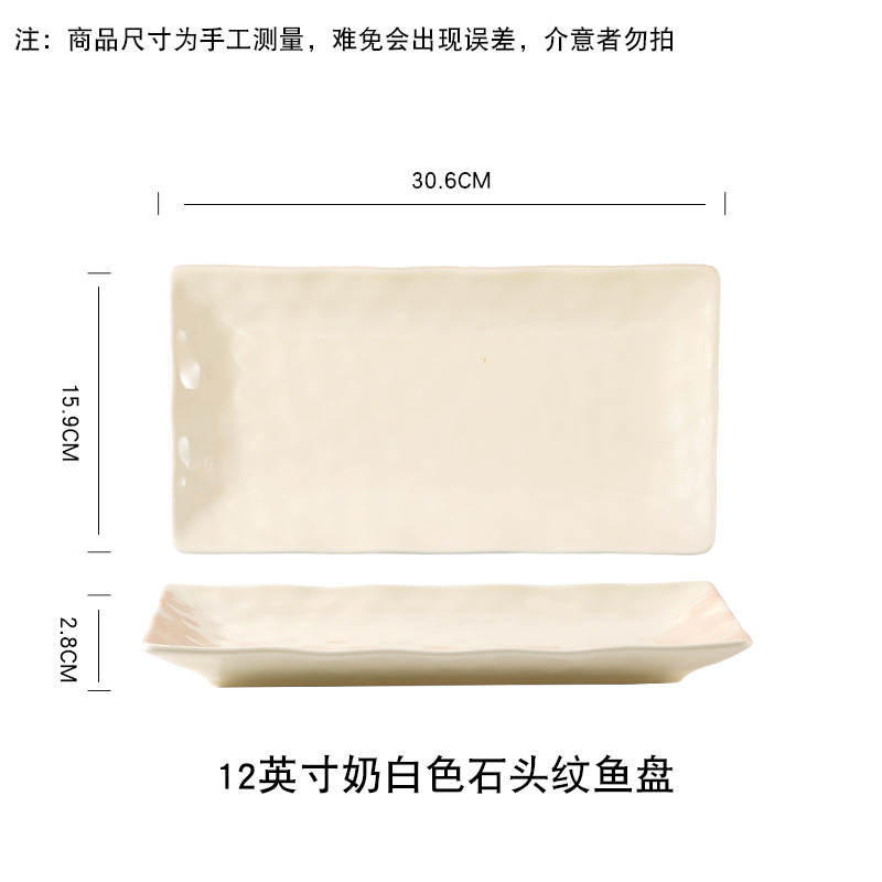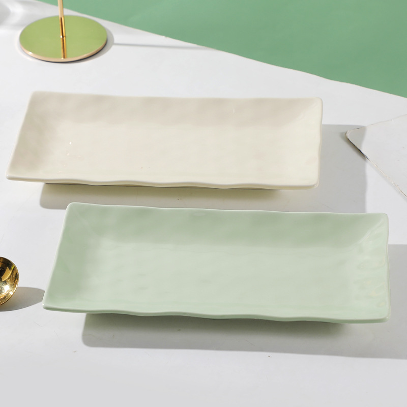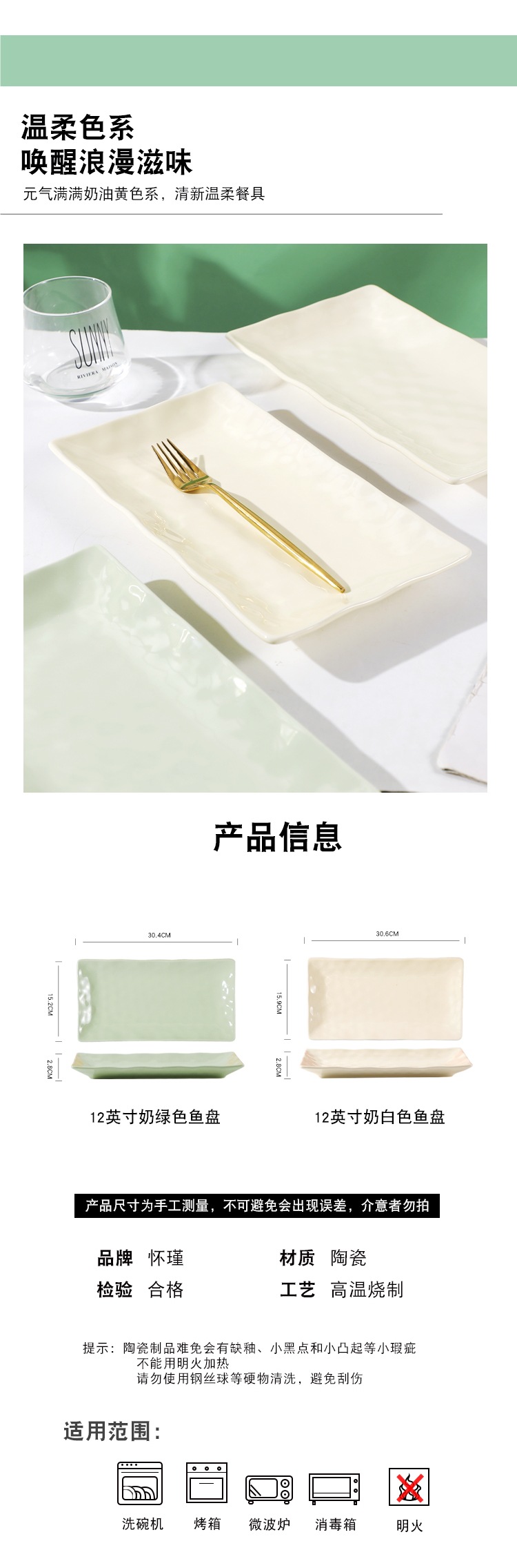 크리 에이 티브 12 인치 크림 스타일 어판 밀크 화이트 밀크 그린 대형 가정용 긴 스퀘어 플레이트 과일 플레이트 초밥 플레이트 세라믹