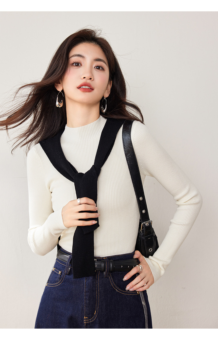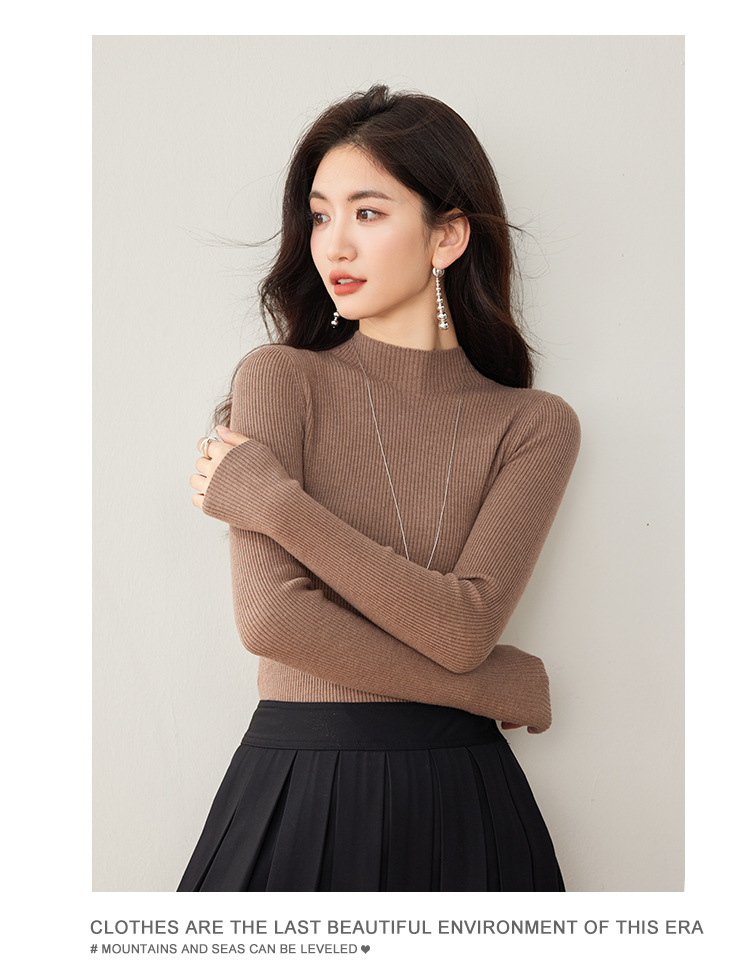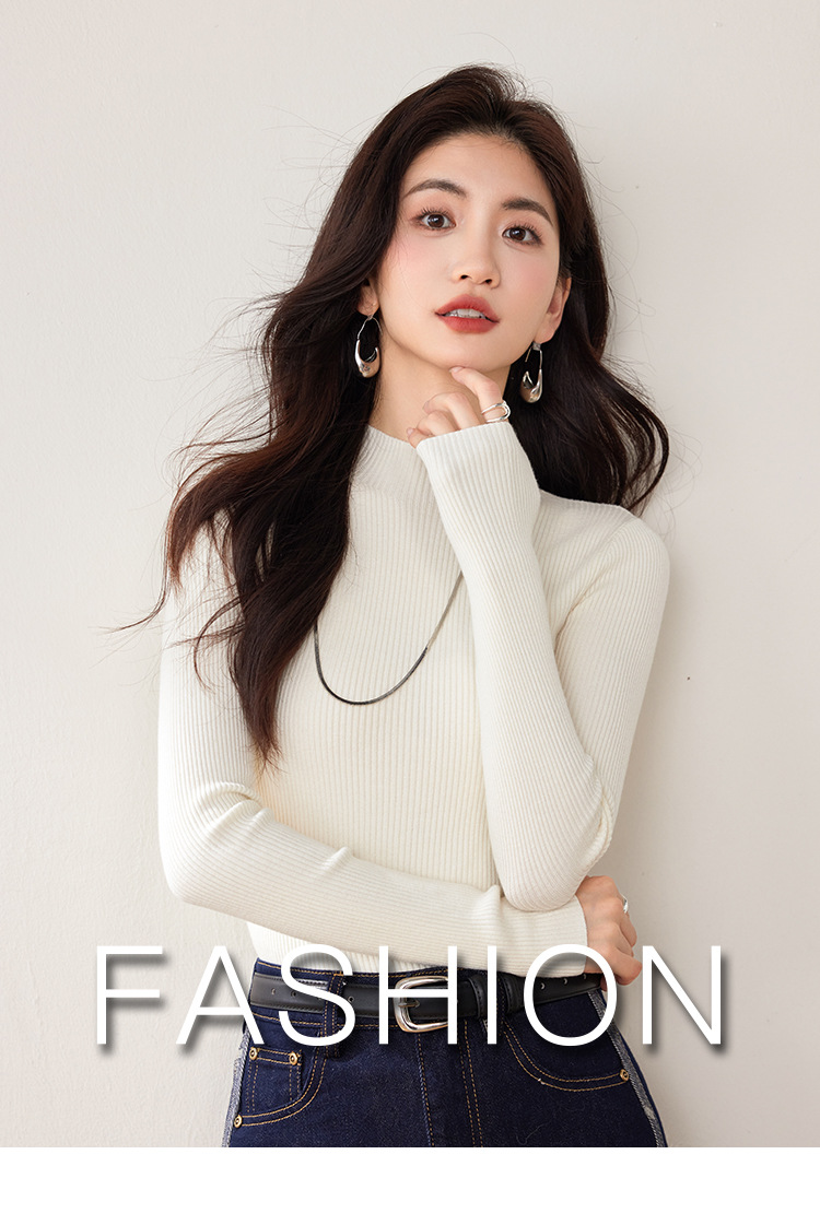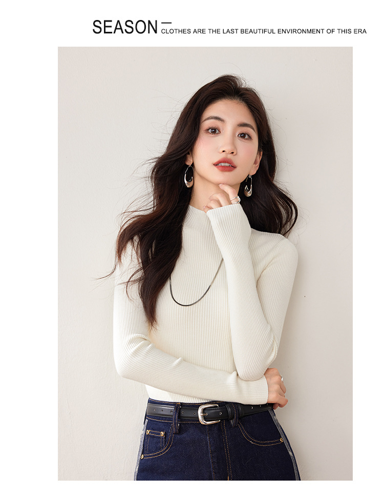 베이스 니트 스웨터 여성의 가을과 겨울 2024 새로운 한국 패션 질감 감지기 슬리밍 어깨 슬리밍 하프 하이 넥 스택 스웨터