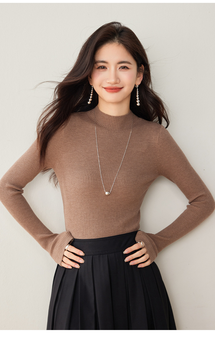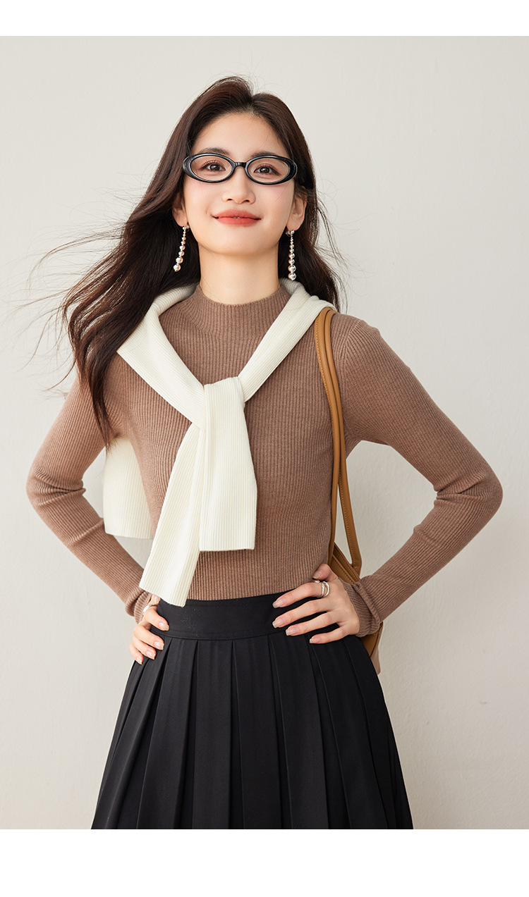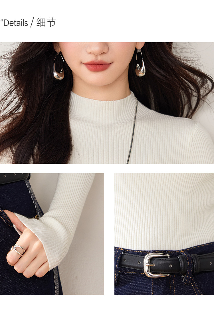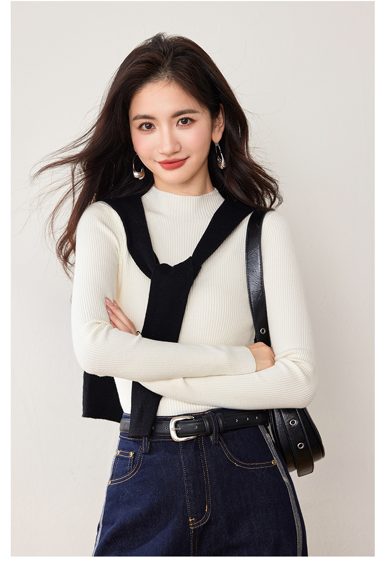 베이스 니트 스웨터 여성의 가을과 겨울 2024 새로운 한국 패션 질감 감지기 슬리밍 어깨 슬리밍 하프 하이 넥 스택 스웨터