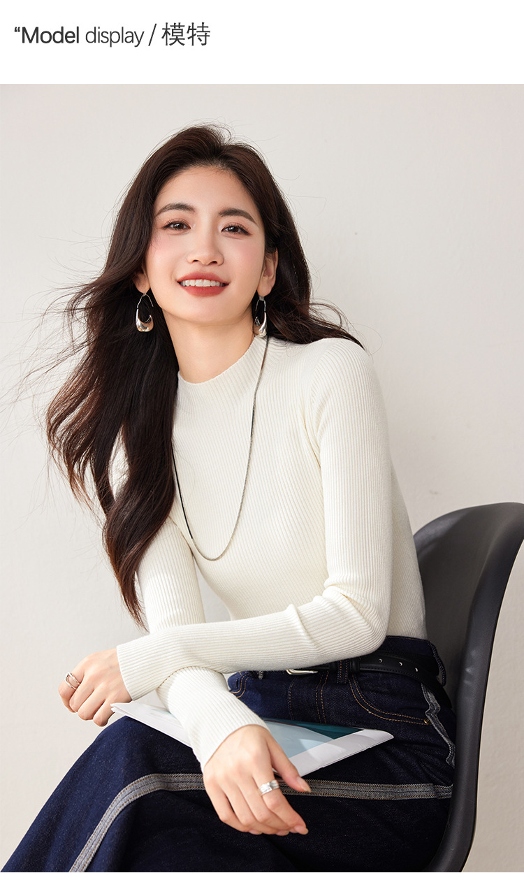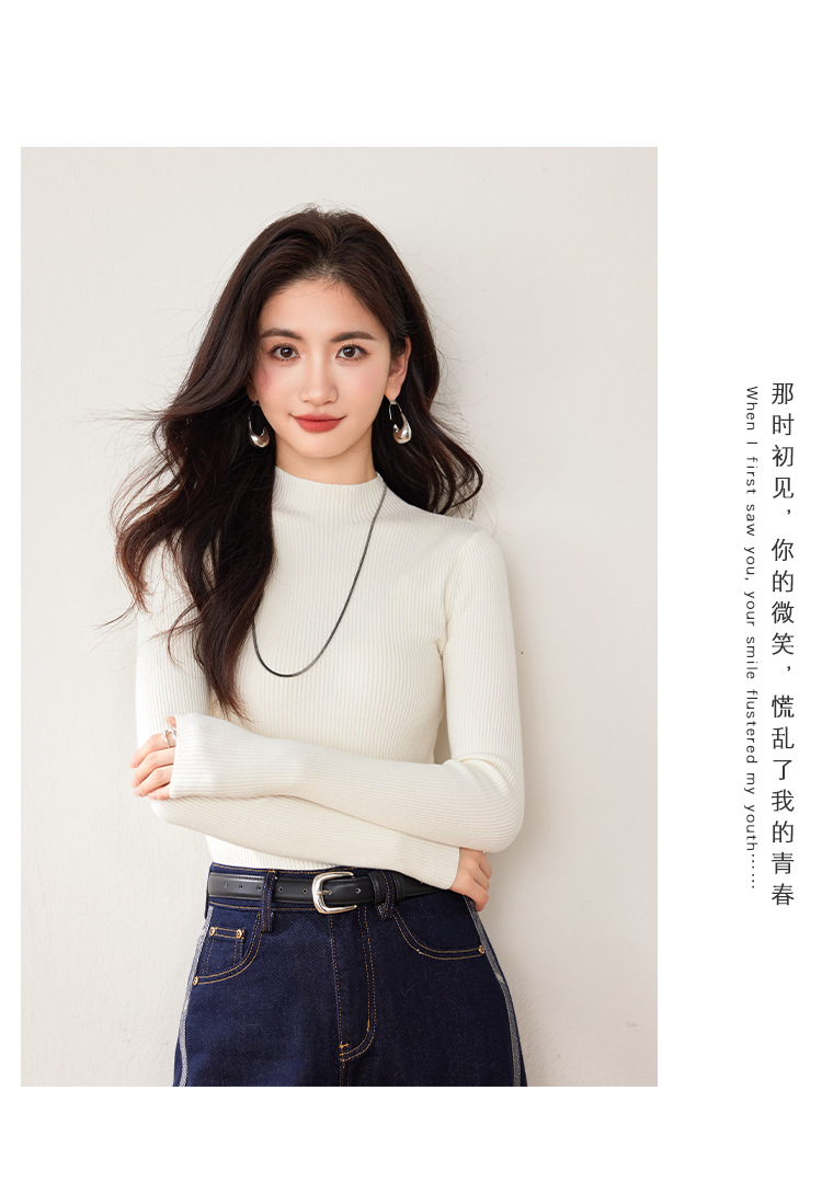 베이스 니트 스웨터 여성의 가을과 겨울 2024 새로운 한국 패션 질감 감지기 슬리밍 어깨 슬리밍 하프 하이 넥 스택 스웨터스토어 가기